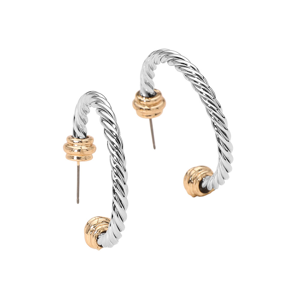 Two Tone Metal Rope Hoop Earrings