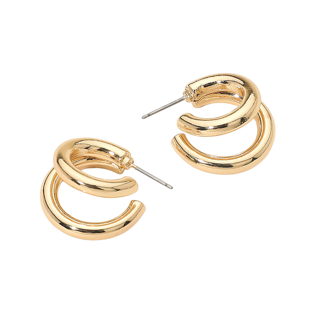 Details • Size : 0.8" X 0.8" X 0.7" • Post Back • Stylish double hoop earrings featuring a sleek design for a modern and versatile look. Ideal for everyday wear or elevating casual outfits, these earrings add a touch of effortless sophistication to any style. • Lead and Nickel Compliant