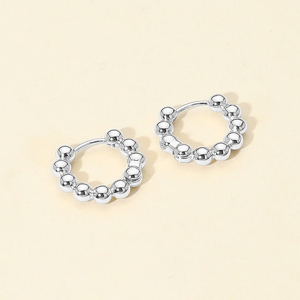 • Elegant beaded hoop earrings designed with polished round beads in a timeless circular style. Lightweight and versatile, these hoops enhance any outfit with subtle shine and modern elegance, making them perfect for daily wear or dressing up for special occasions.