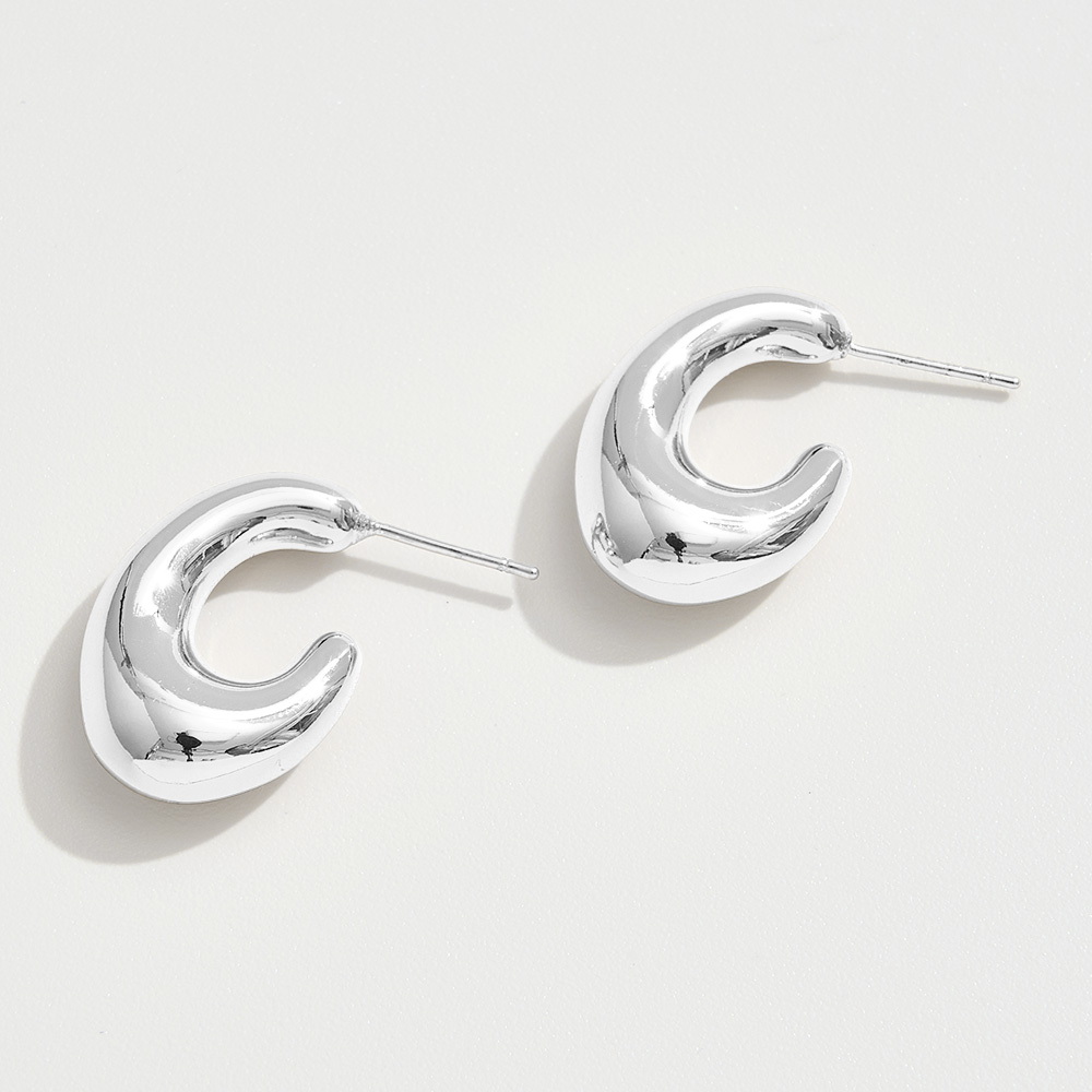 • These sculptural croissant hoop earrings feature a bold, curved silhouette with a smooth finish that creates a modern twist on classic hoops. Lightweight yet statement-worthy, they bring a chic edge to both daytime and evening looks, making them a versatile staple.