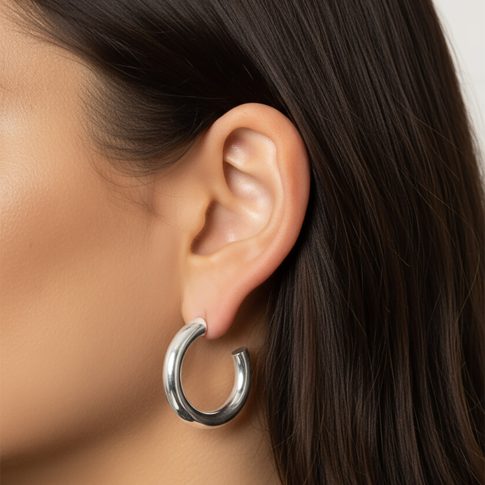 • Refined and versatile, these small open hoop earrings add a touch of modern polish to any outfit. Their sleek design offers timeless appeal, making them a perfect everyday essential that transitions seamlessly from work to evening wear.