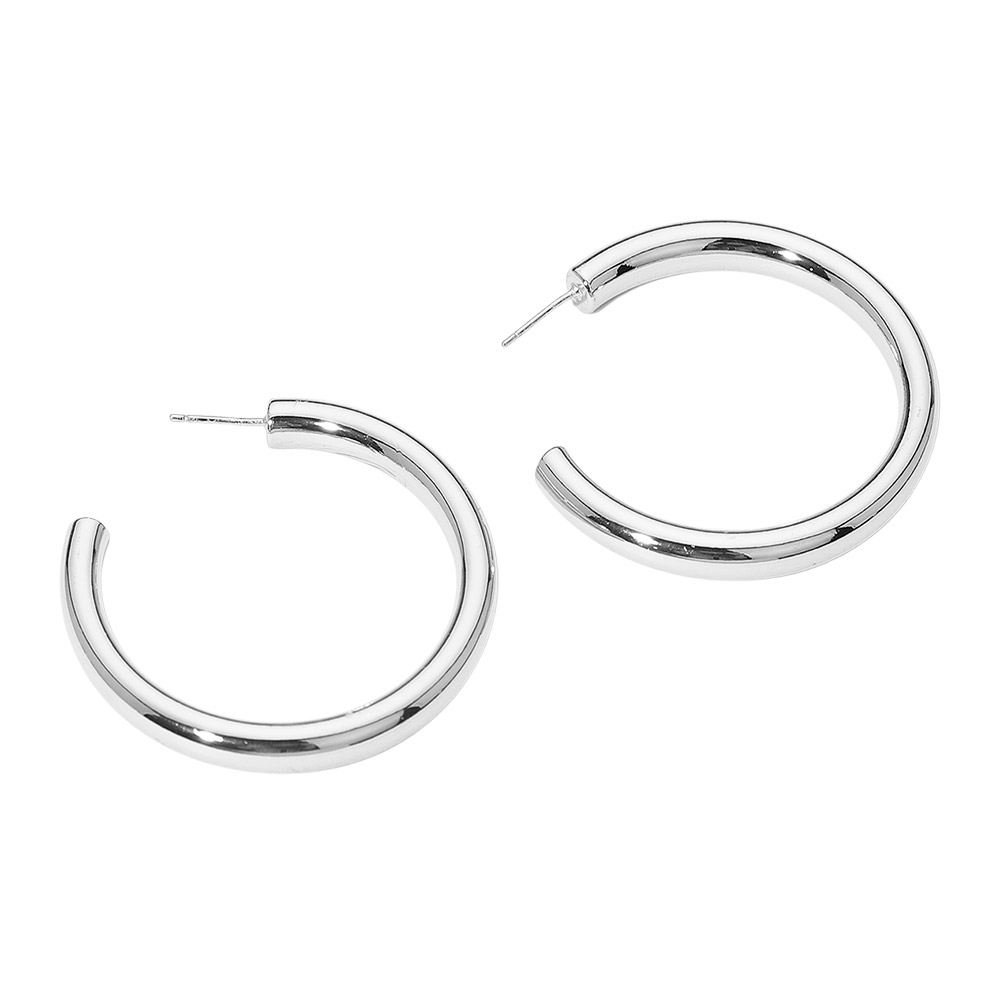 Details • Size : 2" X 2" • Post Back • Make a statement with these sculpted open hoop earrings, designed in a bold chunky silhouette. Their contemporary open-ended style adds effortless edge, perfect for elevating casual looks or complementing evening wear with modern sophistication. • Brass • Gold Dipped • Hypoallergenic • Lead and Nickel Compliant • Made In Korea