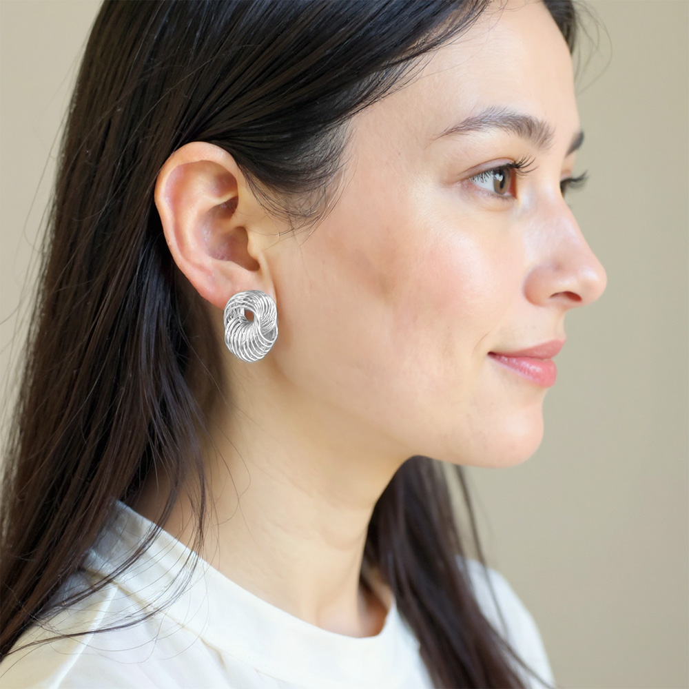 • Elegant knot stud earrings crafted with interwoven wire loops, creating a bold yet refined sculptural design. Lightweight and versatile, these earrings add modern sophistication to casual or formal outfits, making them a timeless accessory for jewelry collections and everyday wear.