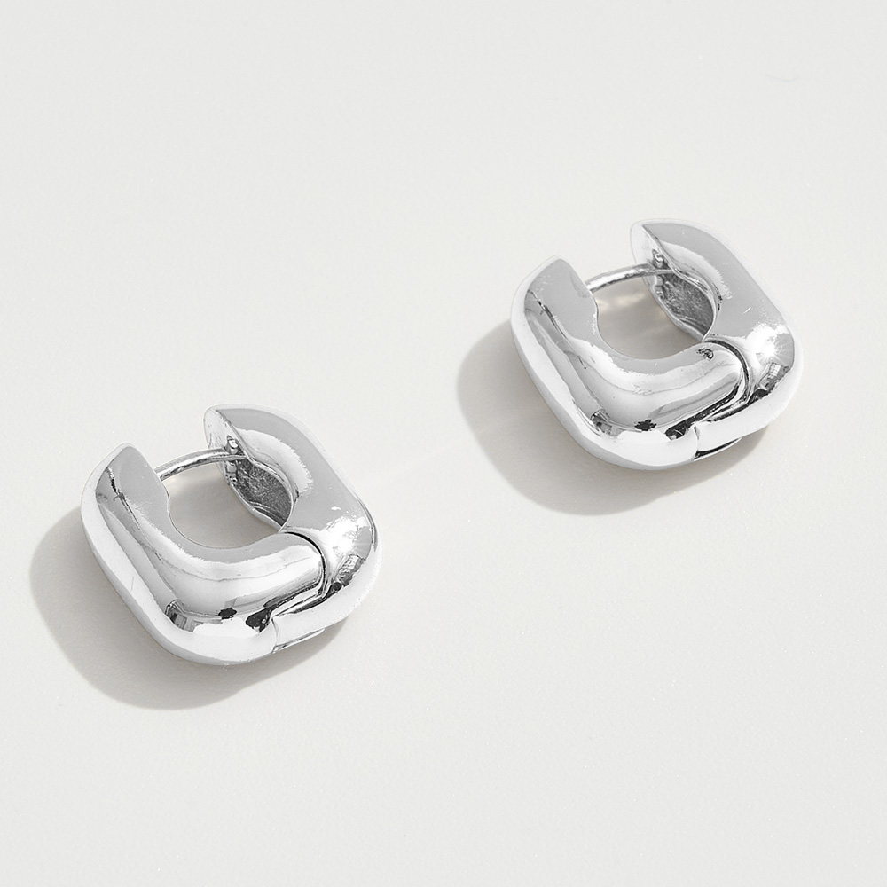 • These chunky square hoop earrings feature a bold geometric silhouette with a smooth, polished finish for a modern twist on classic hoops. Their sculptural shape adds edge and elegance, making them a versatile statement piece for both casual and elevated looks.