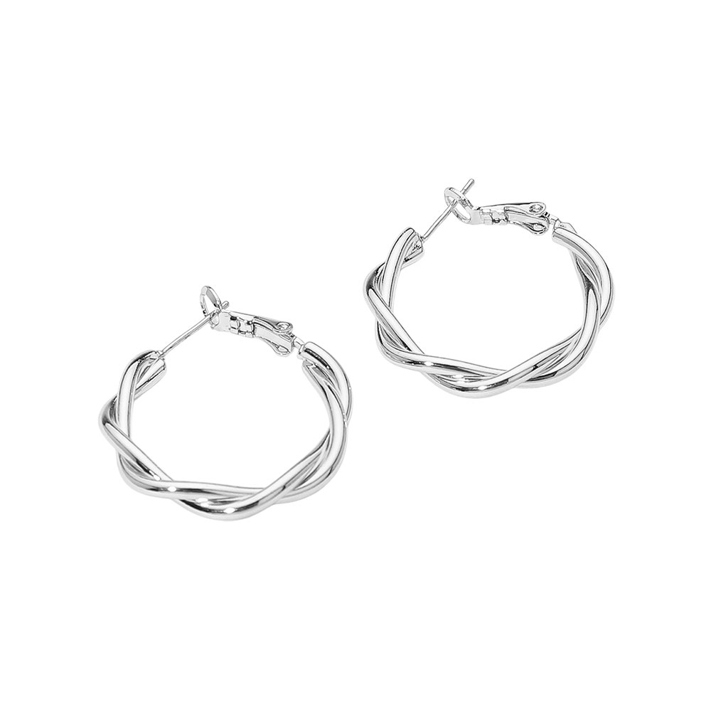 Details • Size : 1.2" X 1.2" • Omega Back • Stylish textured hoop earrings with a unique twist design that adds dimension and elegance. Lightweight and versatile, these hoops are perfect for elevating everyday outfits or complementing evening looks with timeless sophistication. • Lead and Nickel Compliant • Hypoallergenic • Made In Korea • Gold Dipped • Brass