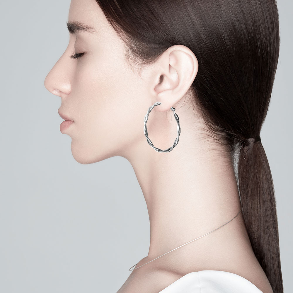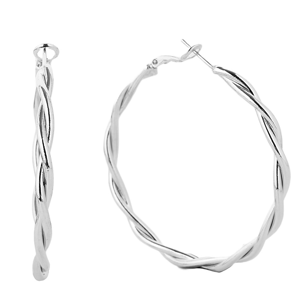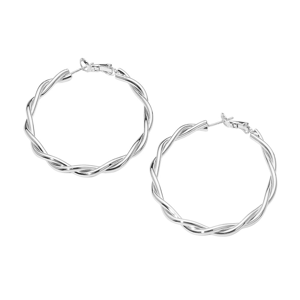 Details • Size : 2" X 2" • Omega Back • Stylish hoop earrings featuring a twisted braided design that adds texture and elegance to any look. Lightweight and versatile, these earrings are perfect for casual or dressy occasions, offering a timeless accessory that enhances everyday outfits with a chic and modern touch. • Brass • Gold Dipped • Hypoallergenic • Lead and Nickel Compliant • Made In Korea