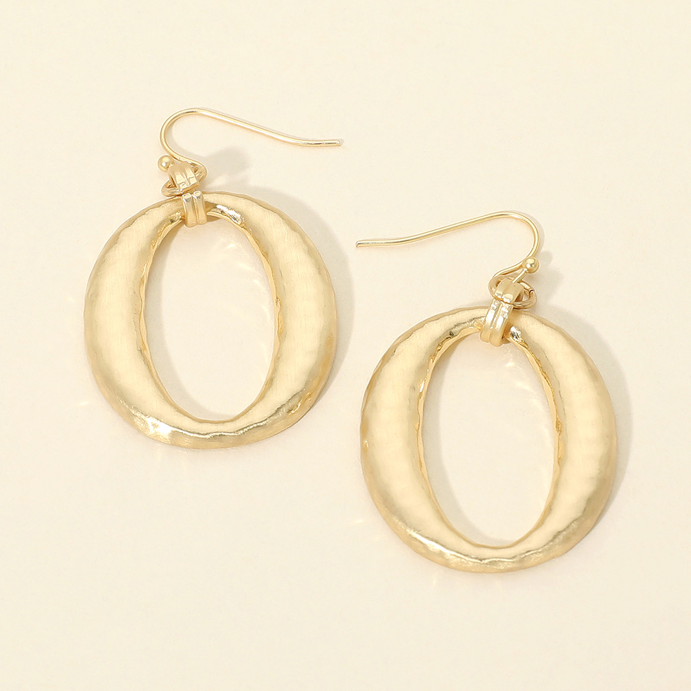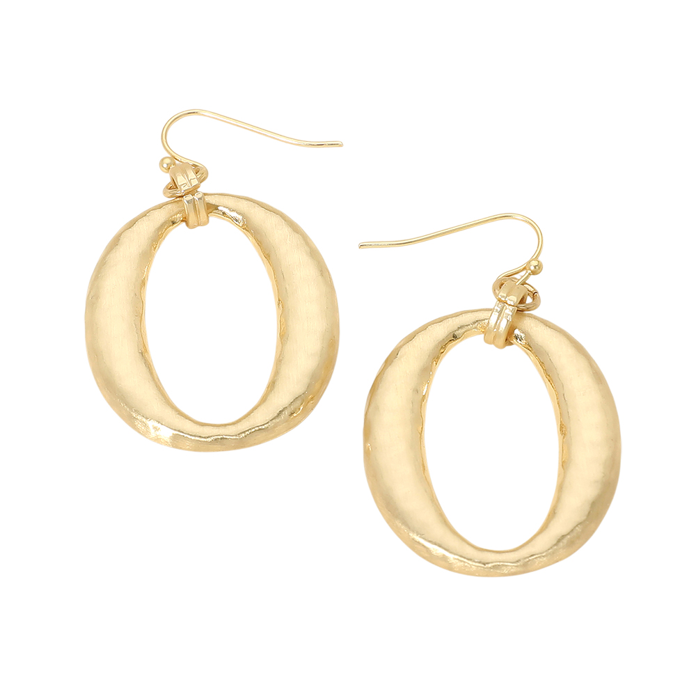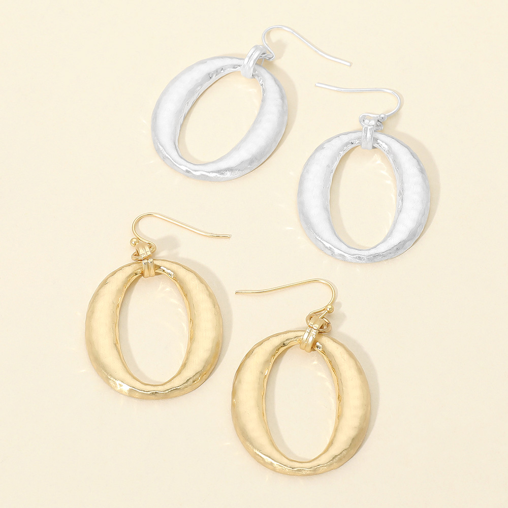 • Modern oval drop earrings with a softly hammered texture that adds depth and dimension without extra weight. Designed with an open silhouette and classic hook closure, these earrings offer effortless movement and versatility for everyday wear, work looks, and seasonal boutique collections. Perfect for minimalist and contemporary jewelry assortments.