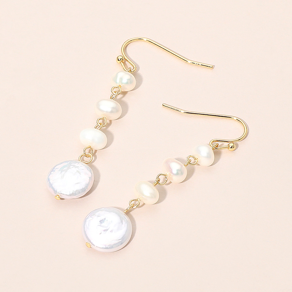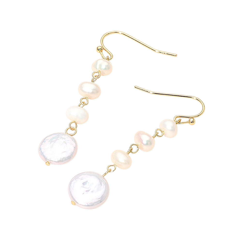 Details • Size : 0.5" X 2.1" • Fish Hook Back • Add effortless elegance to your look with these pearl charm drop earrings featuring a graceful cascading design that creates light movement and refined shine. Perfect for daily wear or special occasions, they offer classic style and make a thoughtful gift choice. • Gold Dipped • Lead and Nickel Compliant