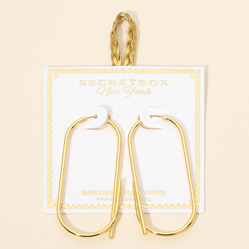Details • Size : 1.1" X 2.4" • Pin Catch • Modern elongated oval hoop earrings designed with a sleek open silhouette for effortless everyday styling. Lightweight and comfortable, these hoops add a refined statement to casual looks or polished outfits, making them a versatile essential for minimalist jewelry collections and layered ear styling. • Gold Dipped • Hypoallergenic