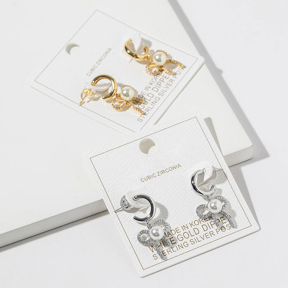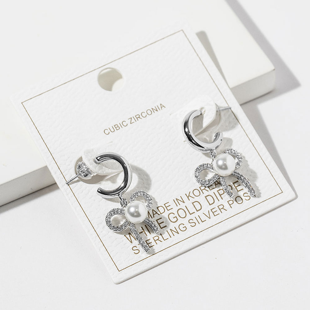 Details • Size : 0.6" X 1.2" • Charming hoop earrings designed with a graceful bow silhouette and a smooth round drop at the center. Accented with subtle cz sparkle, this feminine style adds movement and elegance, making it ideal for daily wear, gifting, or pairing with both casual and dressy outfits. • CZ Cubic Zirconia • Gold Dipped • Lead and Nickel Compliant • Made In Korea • Sterling Silver Post