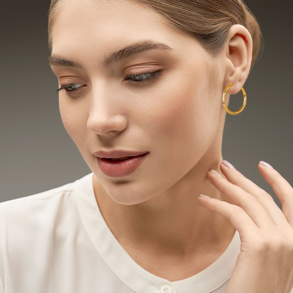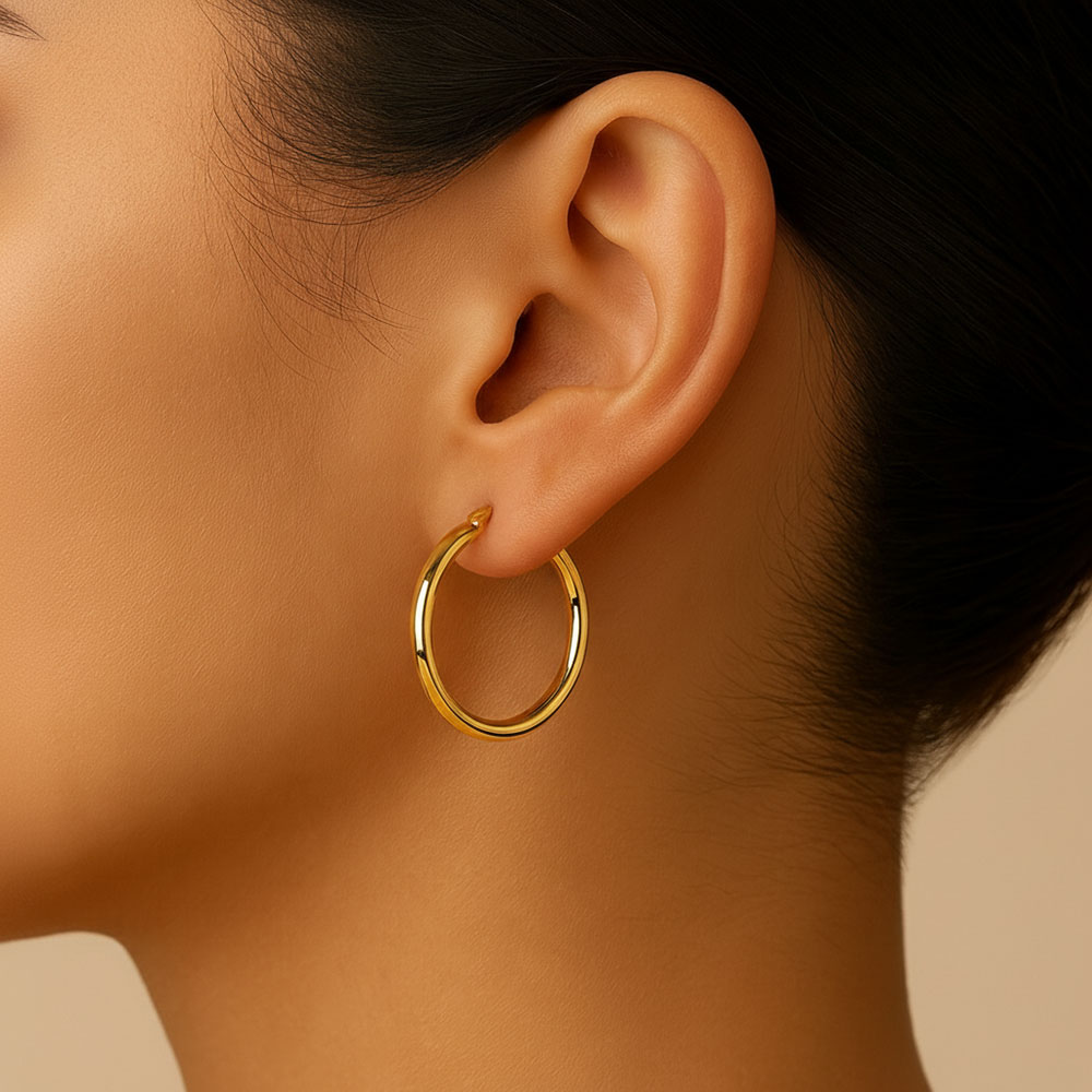 • Elegant small hoop earrings designed for effortless everyday style. Lightweight and versatile, these timeless hoops bring a polished finish to any outfit, making them the perfect accessory for both casual and professional looks.