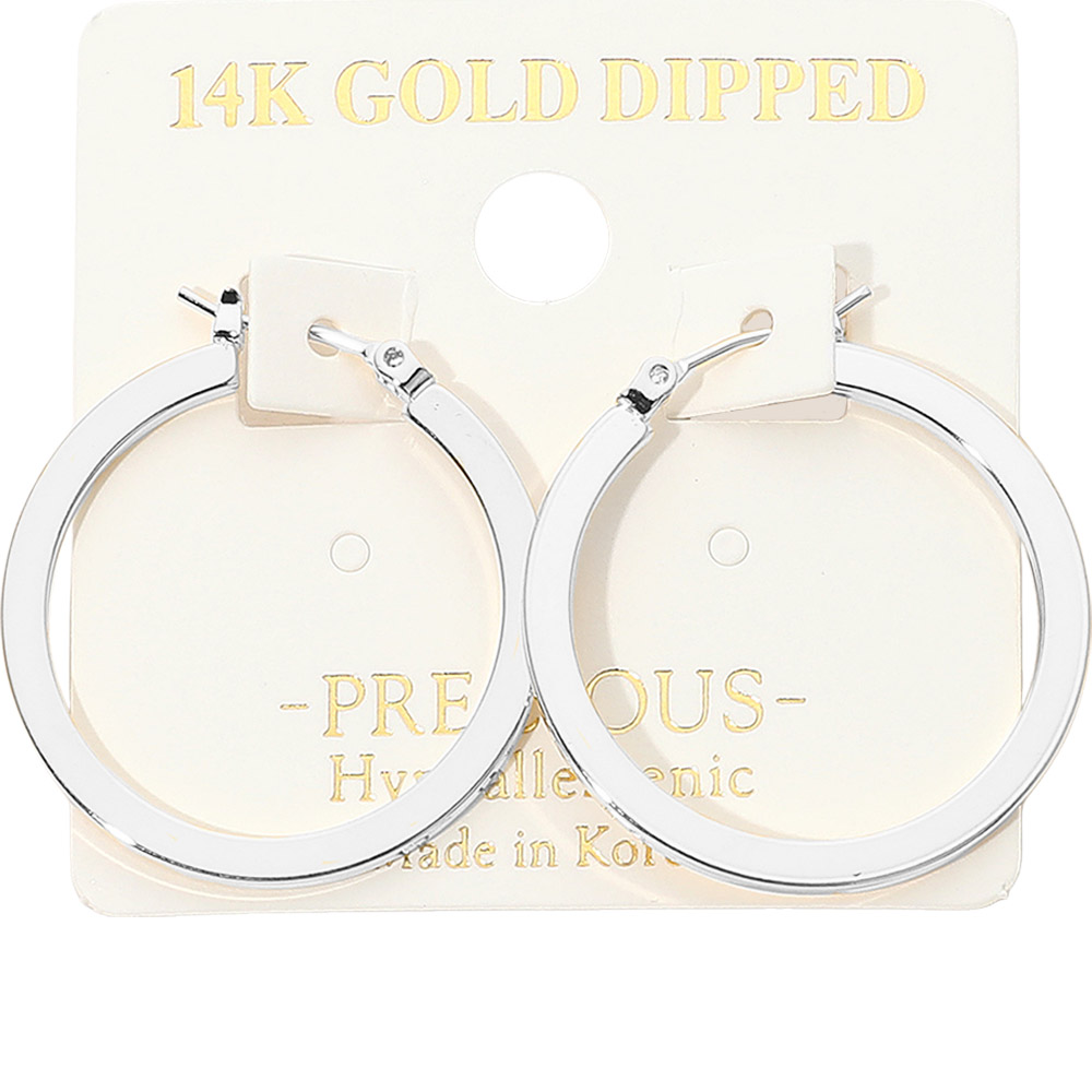 14K Gold Dipped Hypoallergenic Classic Pin Catch Hoop Earrings