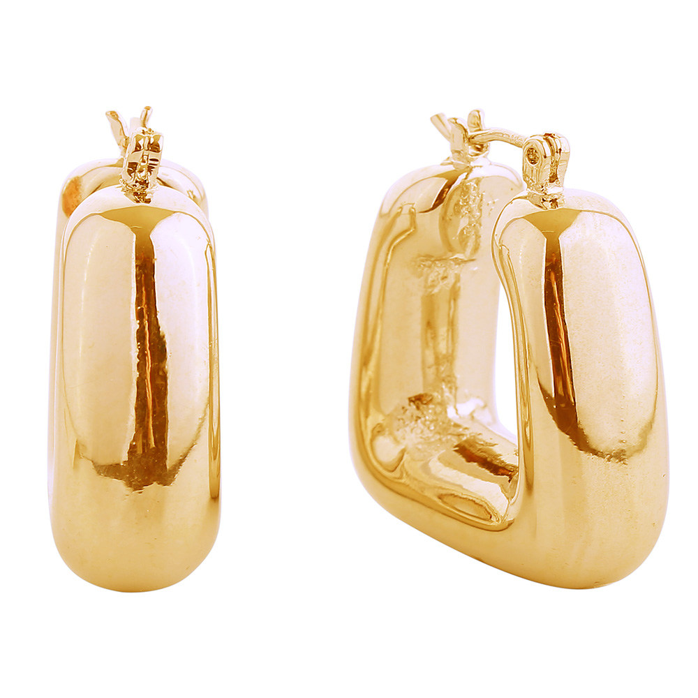 14K Gold Dipped Puffed Square Pin Catch Hoop Earrings