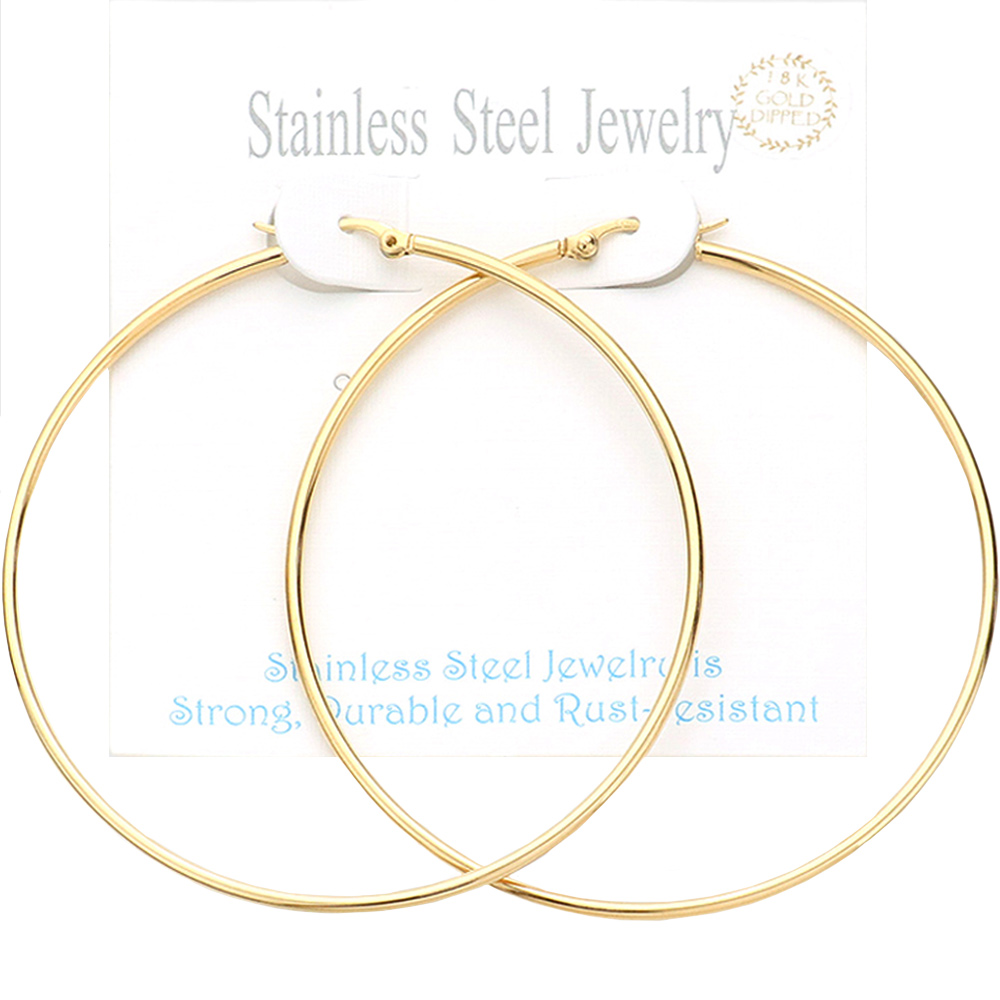 18K Gold Dipped Stainless Steel 3 Inch Metal Hoop Pin Catch Earrings