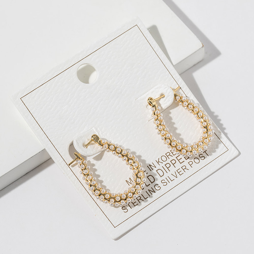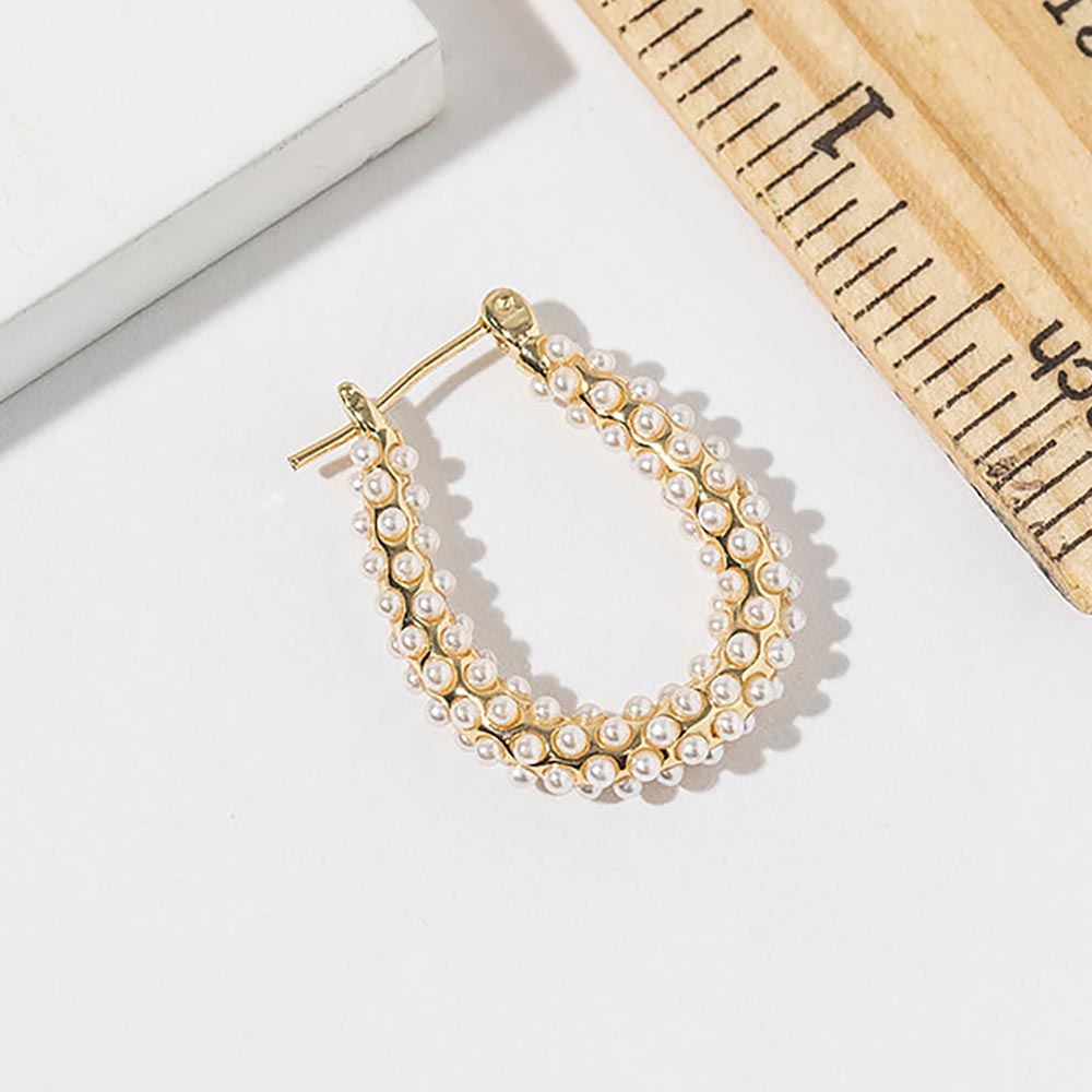 Details • Size : 0.75" X 1" • Pin Catch • Elegant pearl hoop stud earrings designed with a classic rounded silhouette and refined detailing. A timeless accessory for everyday wear, work outfits, special occasions, and gifting, these earrings offer understated sophistication, graceful style, and versatile appeal that complements both casual and dressy looks. • Gold Dipped • Lead and Nickel Compliant • Made In Korea • Sterling Silver Post