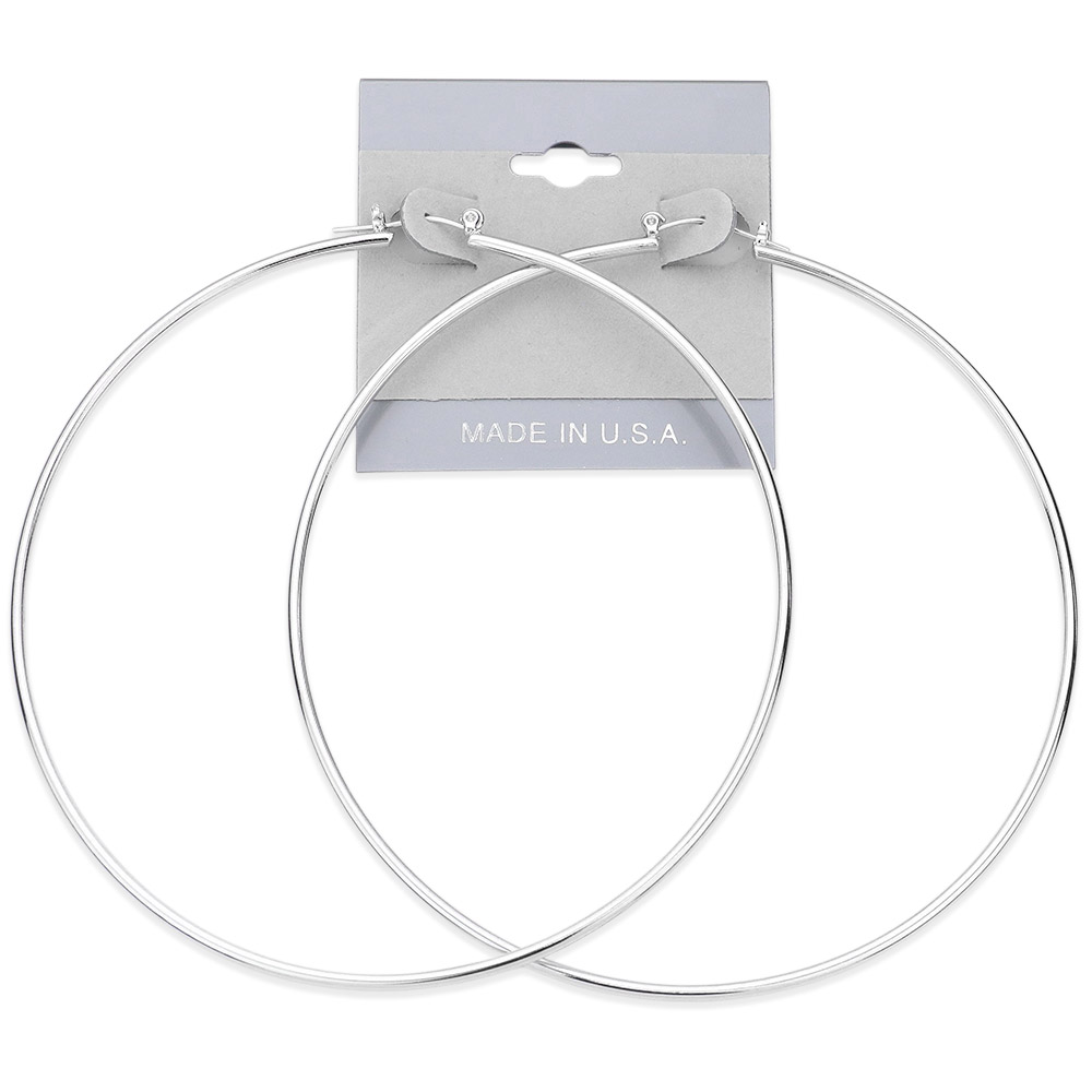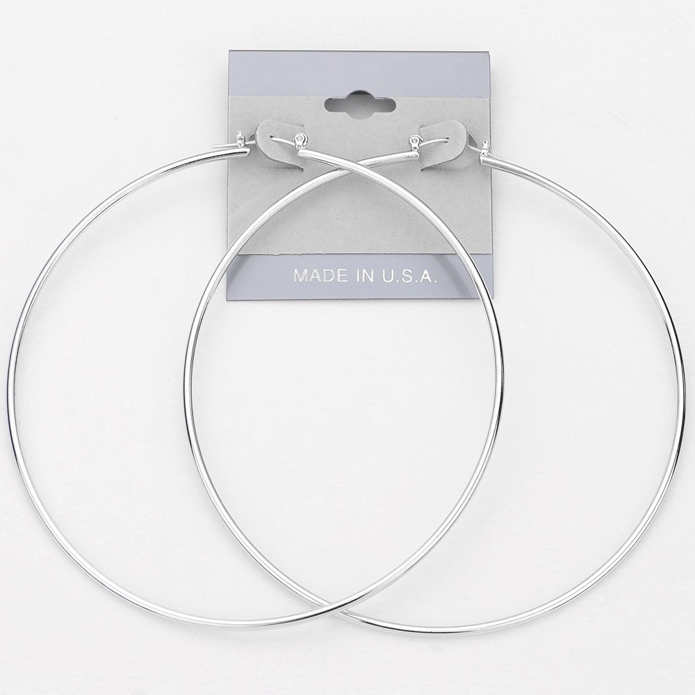 Details • Size : 3.6" L • Pin Catch • Made In USA • Make a bold fashion statement with these extra-large hoop earrings, designed to bring effortless glamour to any outfit. Lightweight and versatile, they offer maximum impact while remaining comfortable for all-day wear. Perfect for dressing up or adding flair to your casual look.