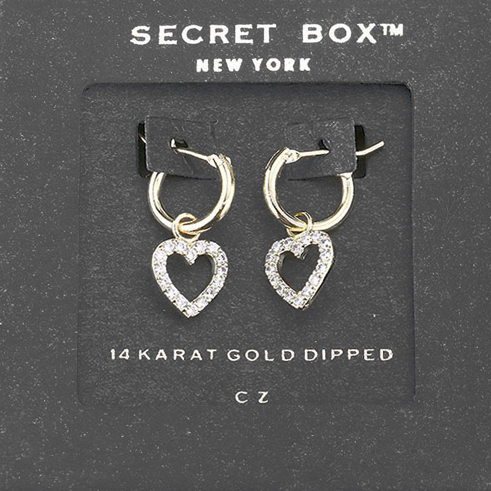 Secret_Box - 14K Gold Dipped CZ Heart Drop Pin Catch Earrings