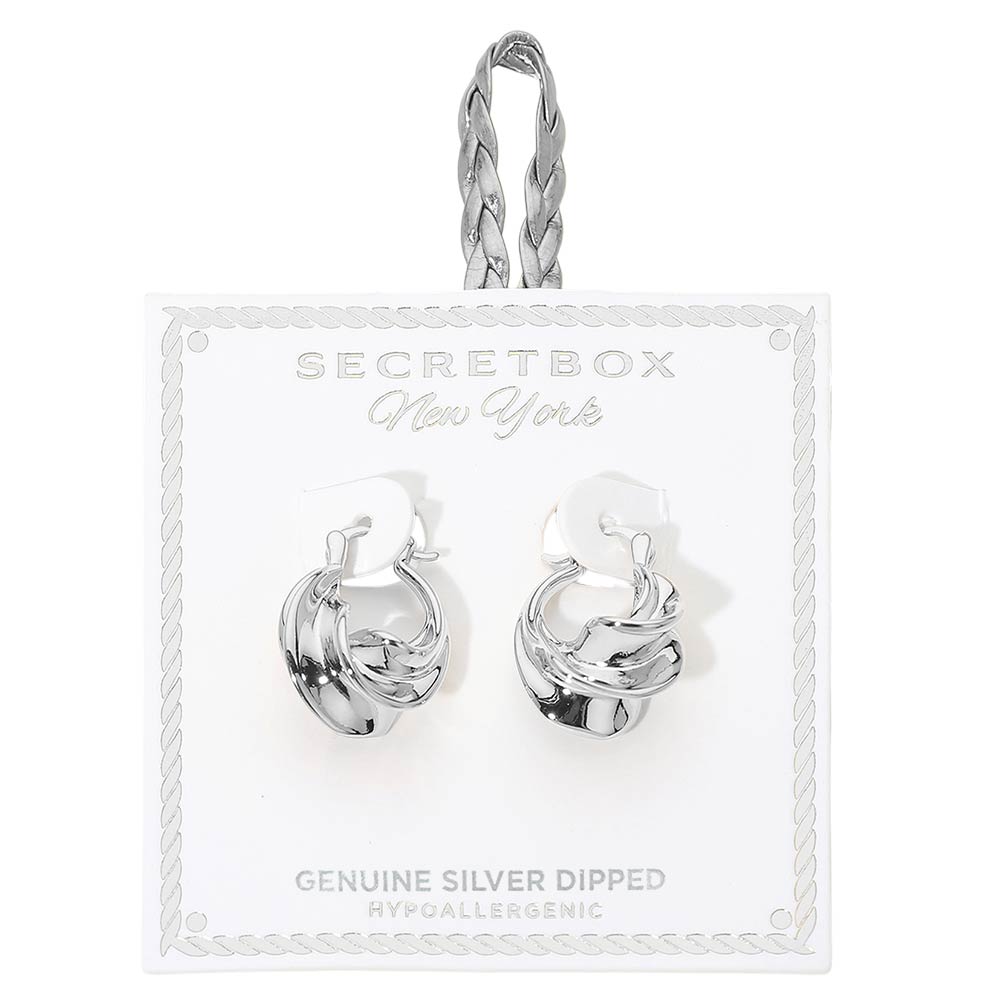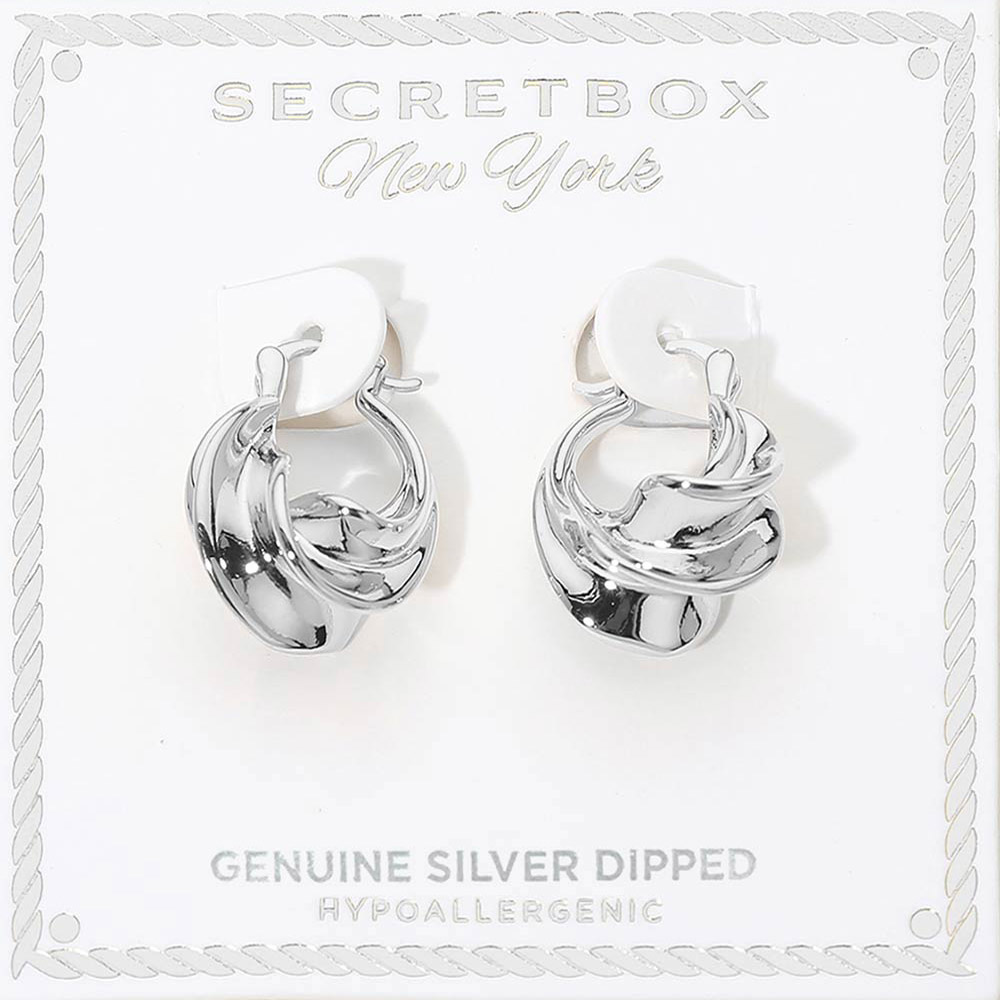 SECRET BOX_Genuine Silver Dipped Twist Pin Catch Hoop Earrings SECRET BOX_Genuine Silver Dipped Twist Pin Catch Hoop Earrings SECRET BOX_Genuine Silver Dipped Twist Pin Catch Hoop Earrings