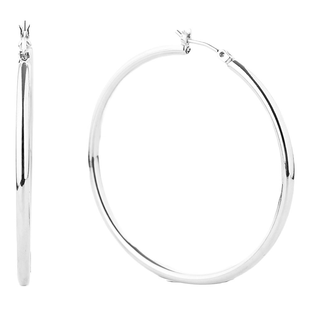 White Gold Dipped Classic Pin Catch Hoop Earrings White Gold Dipped Classic Pin Catch Hoop Earrings