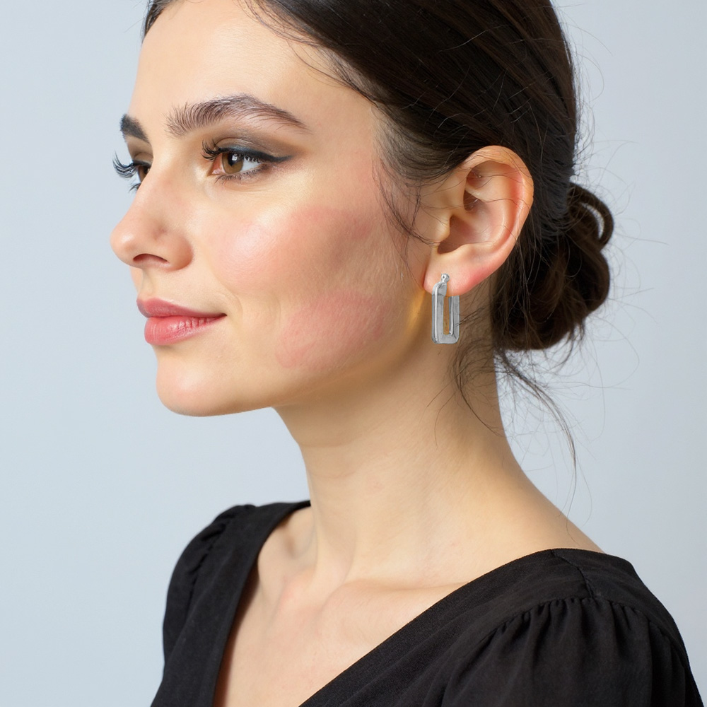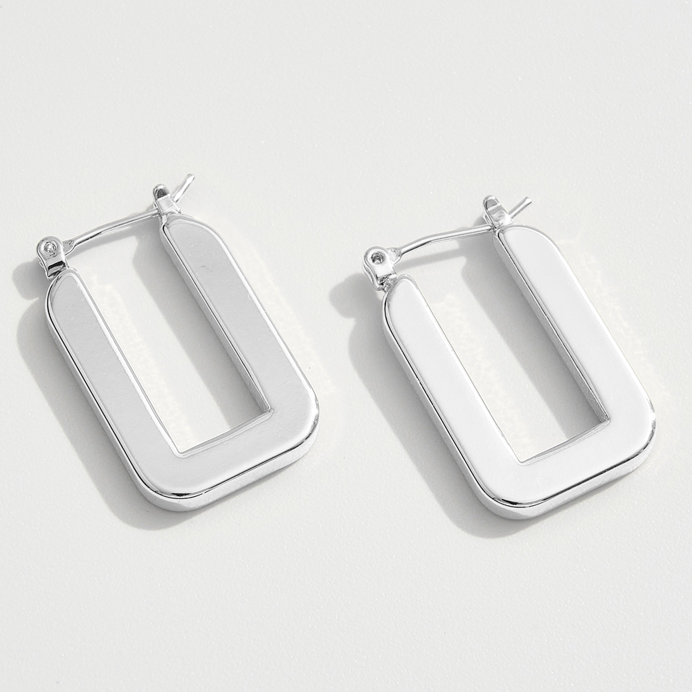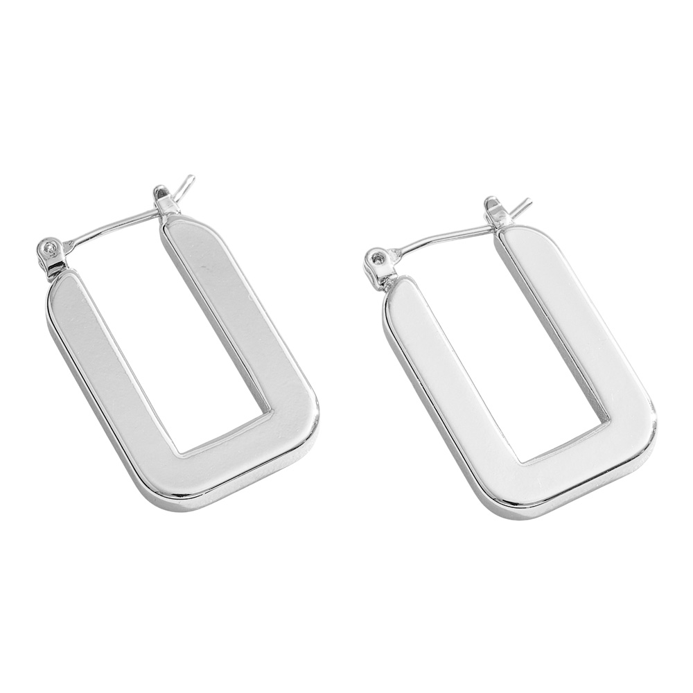 Details • Size : 0.7" X 1" • Pin Catch • Add a sleek, modern edge to your style with these geometric square hoop earrings. Their bold shape and polished finish bring a chic twist to the classic hoop, making them a versatile accessory perfect for elevating everyday looks or complementing evening outfits. • Brass • Gold Dipped • Hypoallergenic • Lead and Nickel Compliant • Made In Korea