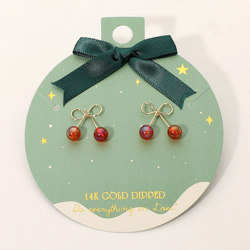 Details • Size : 0.8" X 0.7" • Post Back • Delicate bow-knot ball tip stud earrings presented on a festive card, perfect for gifting or adding a playful touch to everyday looks. The petite shape and charming drop design make them an easy accessory for seasonal outfits, casual wear, or special occasions with a sweet, polished finish. • Lead and Nickel Compliant • Hypoallergenic • Made In Korea • Gold Dipped