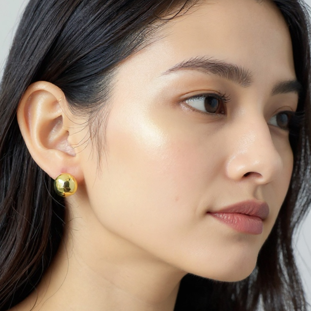 Details • Size : 0.7" X 0.7" • Post Back • Sleek and modern, these round dome stud earrings bring a polished finish to any look. Their smooth, reflective surface makes them versatile for both casual wear and formal occasions, offering a timeless accessory that adds elegance and sophistication with ease. • Brass • Gold Dipped • Lead and Nickel Compliant • Made In Korea