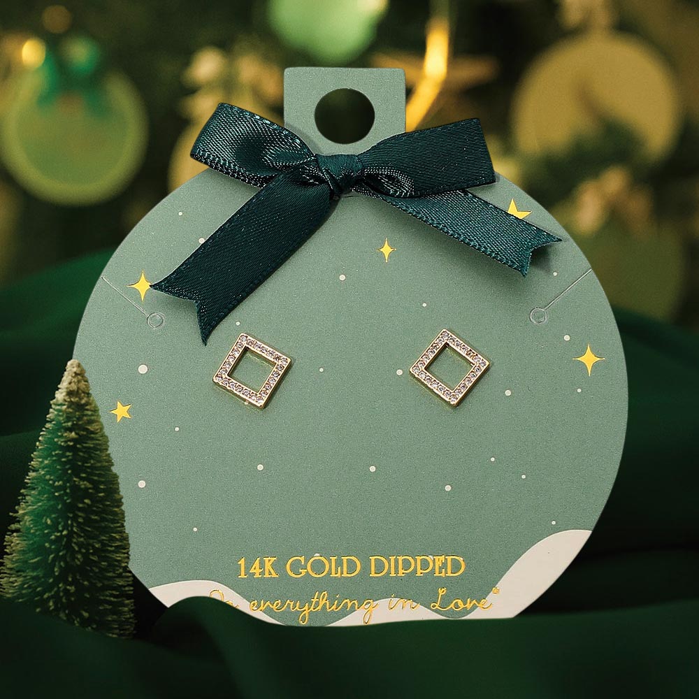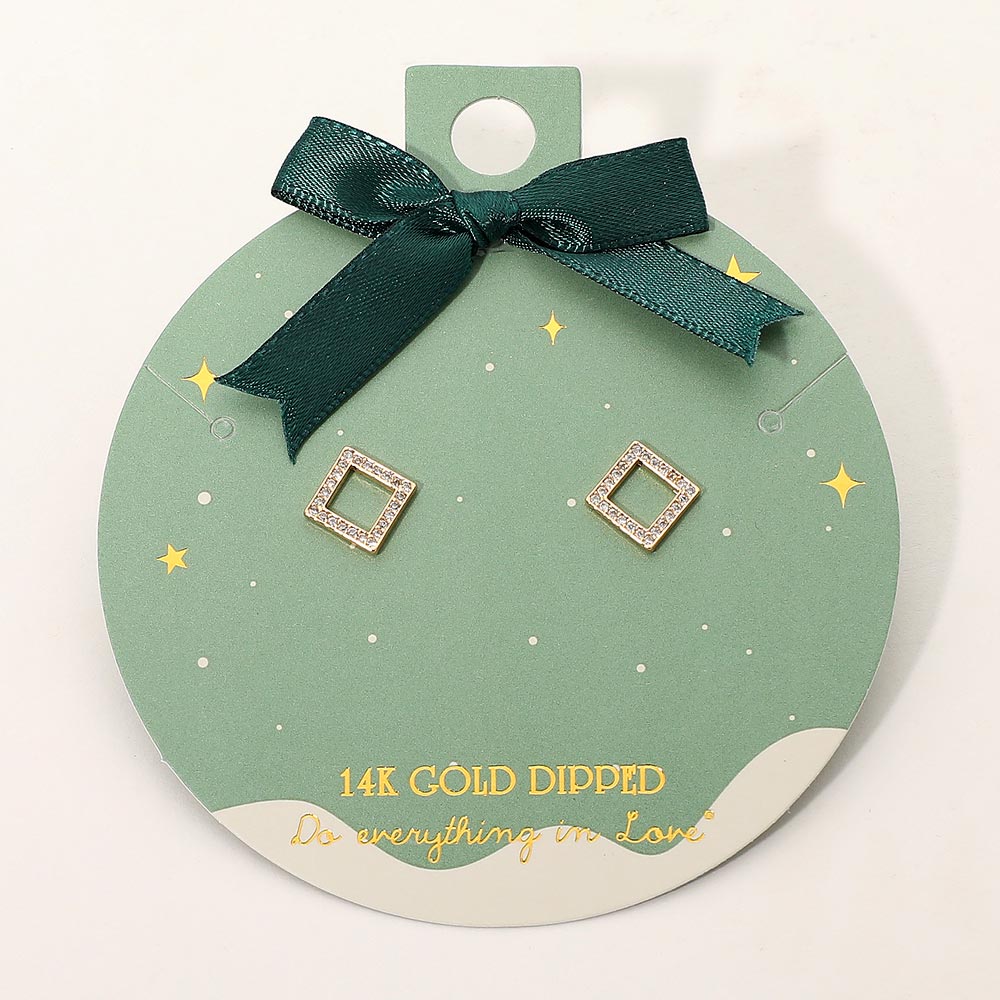 Details • Size : 0.4" X 0.4" • Post Back • Elegant square open frame stud earrings featuring a delicate outline accented with sparkling stones for a refined, modern look. A stylish 14K gold dipped accessory perfect for gifting, everyday wear, or adding a touch of chic detail to any jewelry collection. • Gold Dipped • Hypoallergenic • Lead and Nickel Compliant • Made In Korea