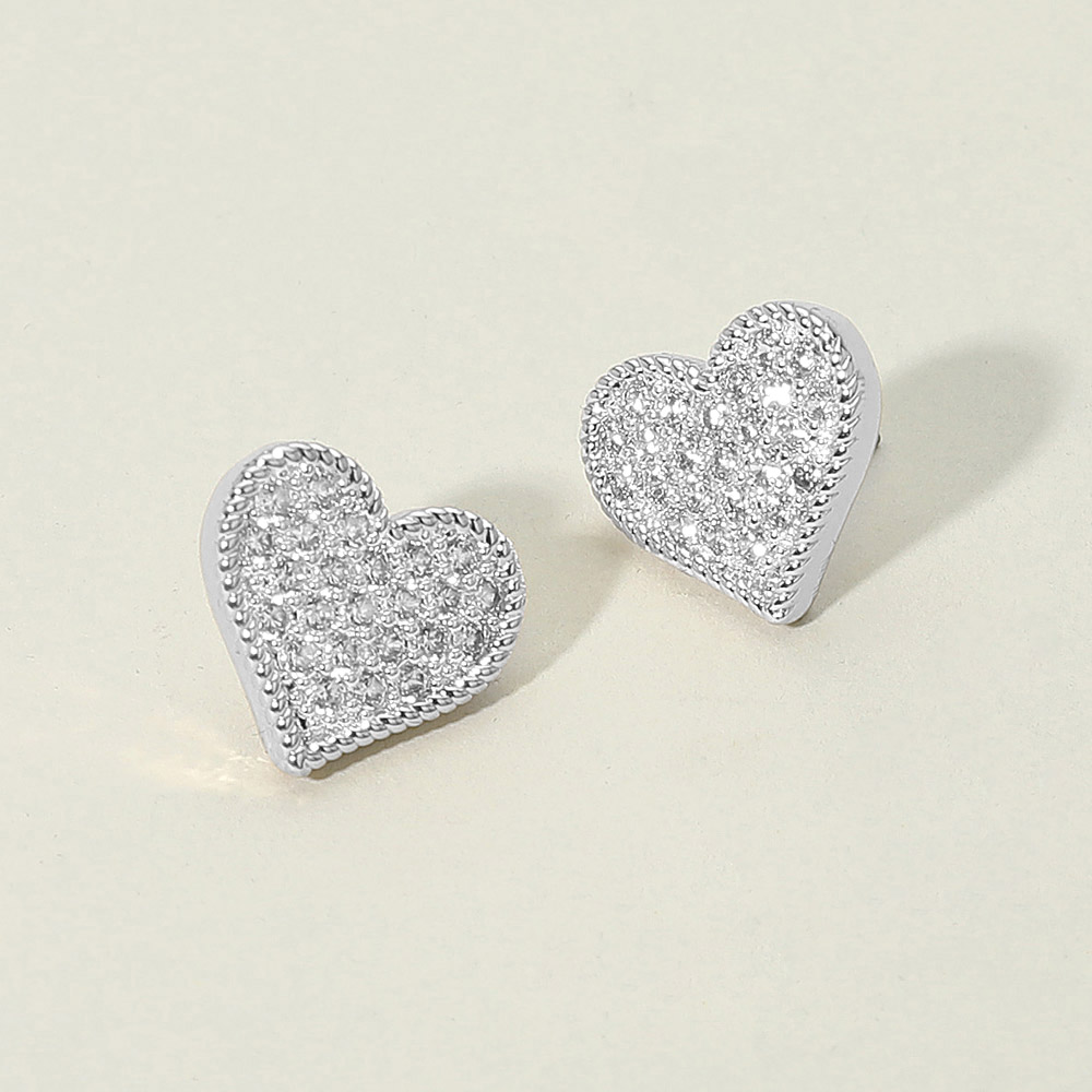 • Add a touch of romance to your look with these crystal heart stud earrings, featuring a sparkling pavĂ© design framed by delicate textured detailing. Perfect for everyday wear or gifting, they bring timeless elegance and feminine charm to any jewelry collection.