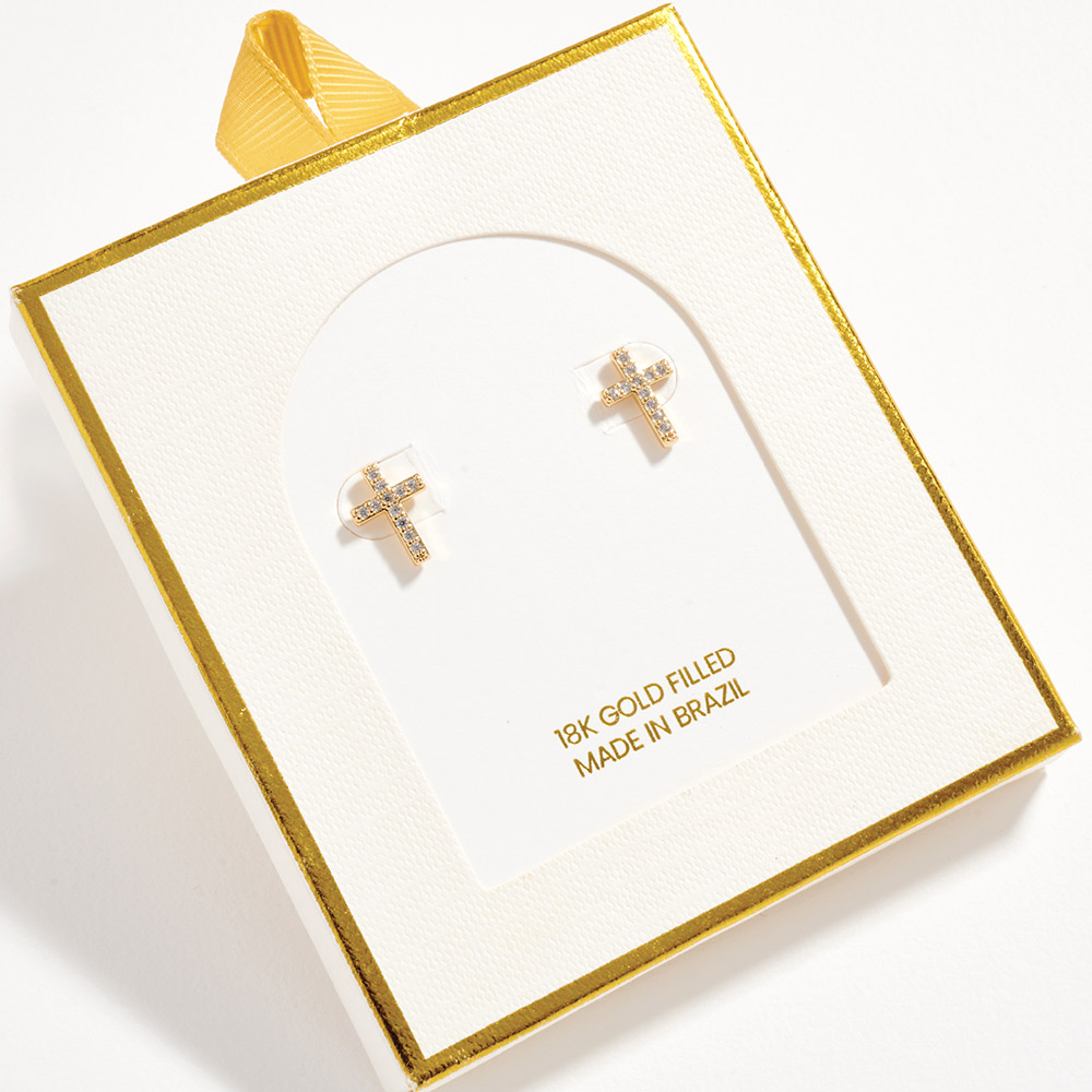 18K Gold Filled CZ Pave Cross Stud Earrings
