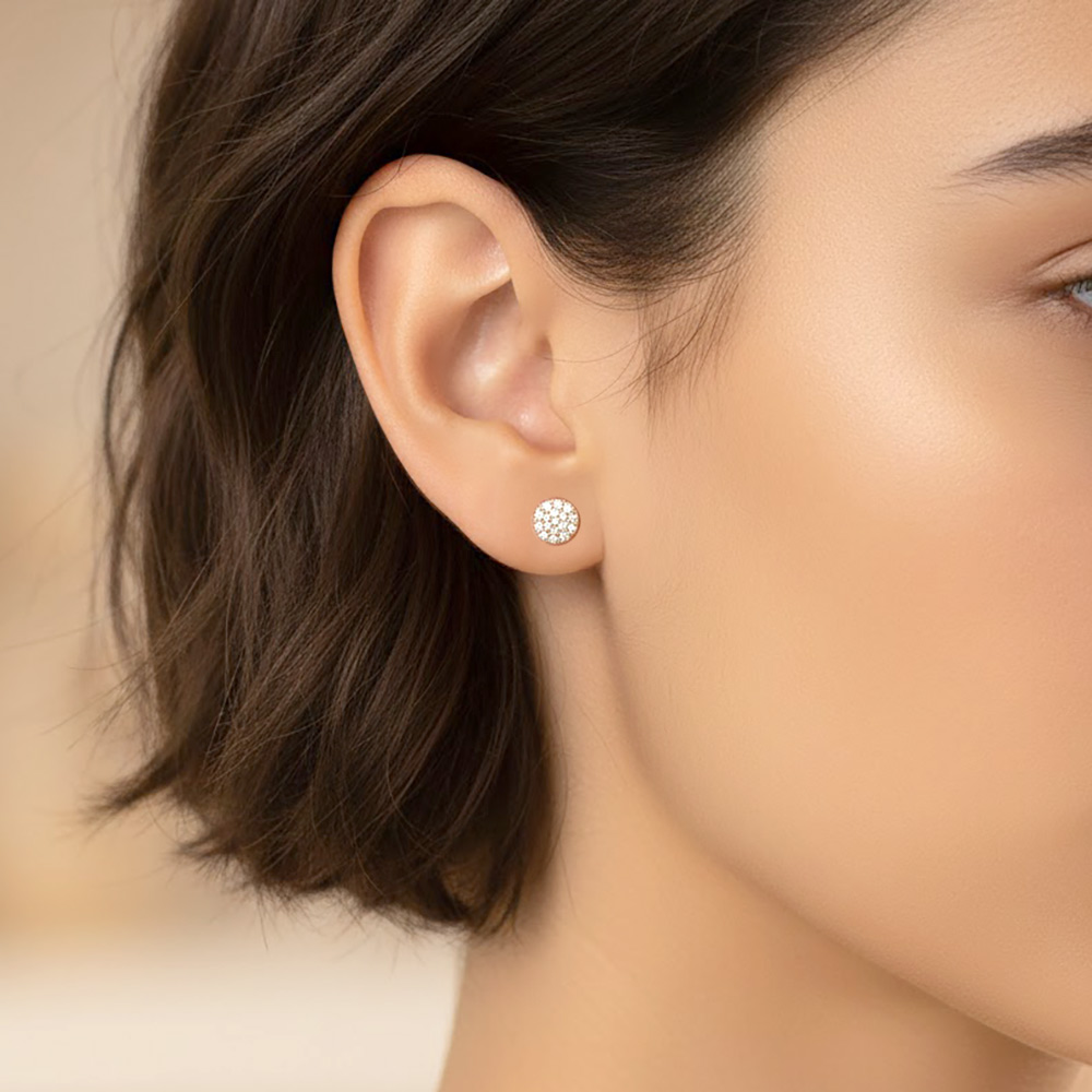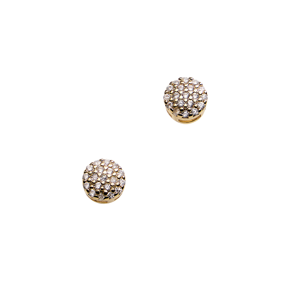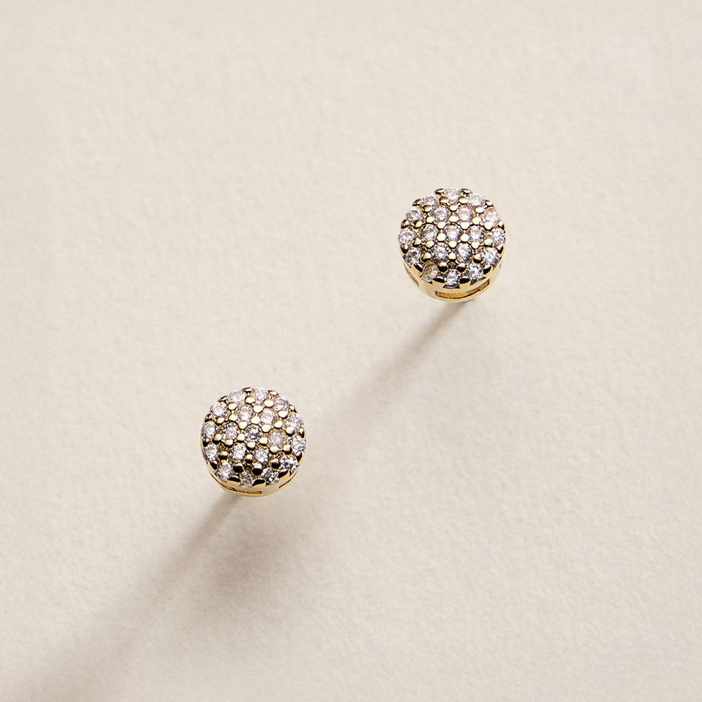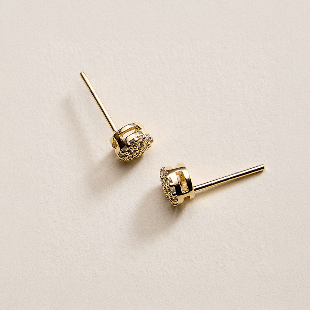 Details • Size : 0.2" X 0.2" • Post Back • Timeless round stud earrings designed for everyday elegance and effortless styling. Featuring a compact silhouette with sparkling accents, these studs deliver subtle shine that pairs easily with casual looks, workwear, and evening outfits, making them a versatile staple for any jewelry collection. • CZ Cubic Zirconia • Gold Filled • Hypoallergenic • Lead and Nickel Compliant • Made In Brazil