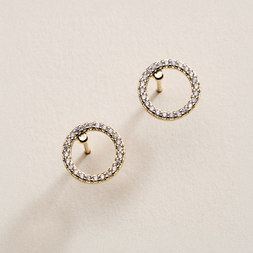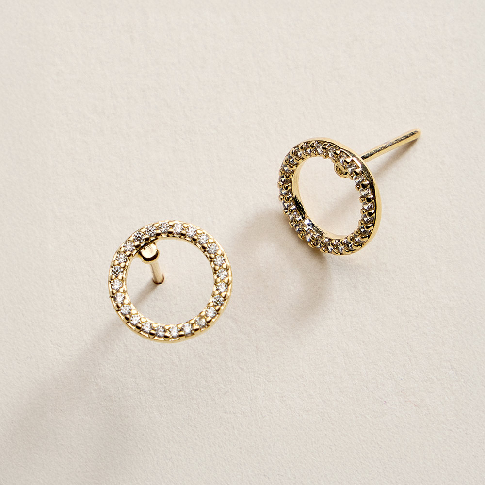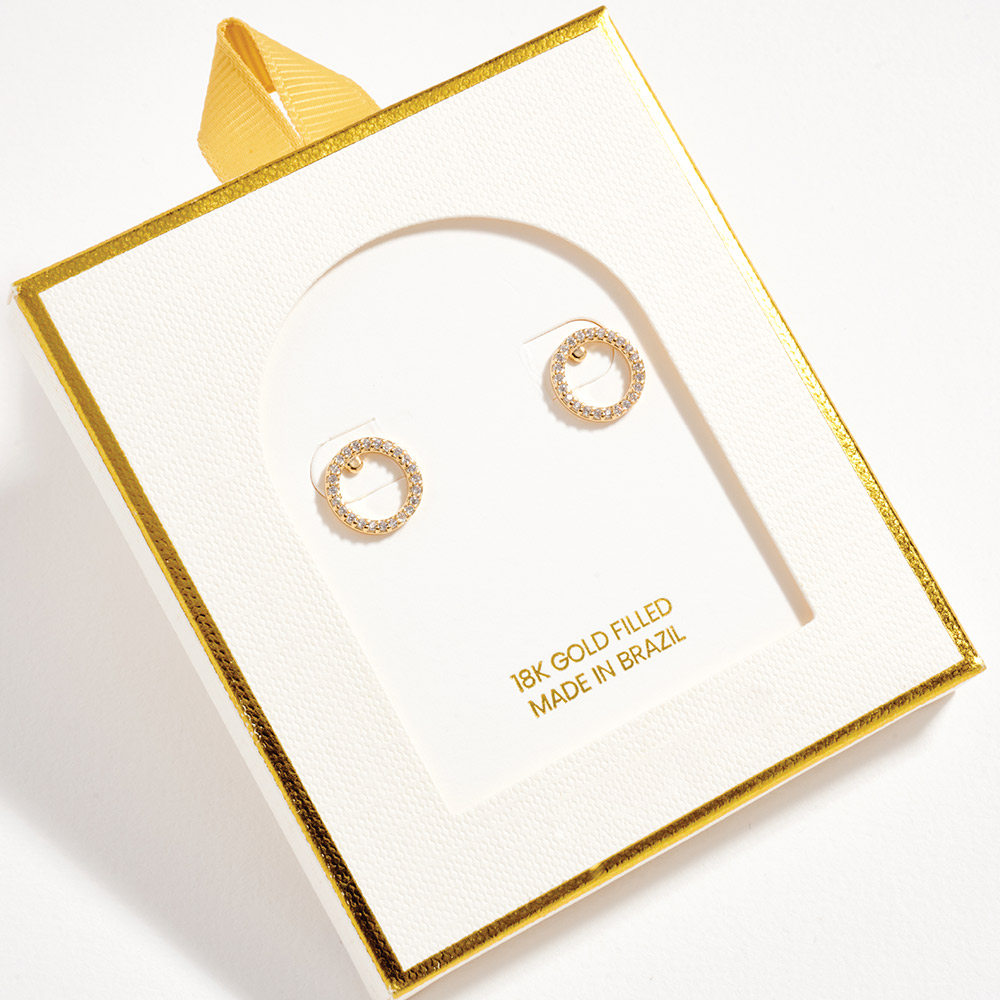 Details • Size : 0.4" X 0.4" • Post Back • Minimalist circle stud earrings accented with sparkling CZ details for a clean, modern look. Designed for effortless everyday wear, these classic studs add subtle shine and timeless style, making them perfect for layering, gifting, or elevating casual and dressy outfits alike. • CZ Cubic Zirconia • Gold Filled • Hypoallergenic • Lead and Nickel Compliant • Made In Brazil