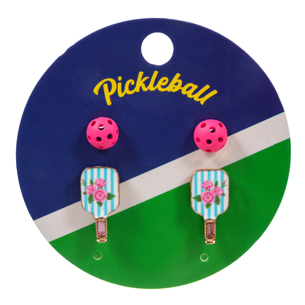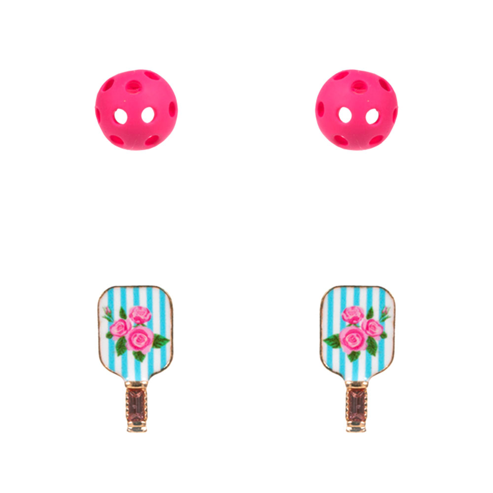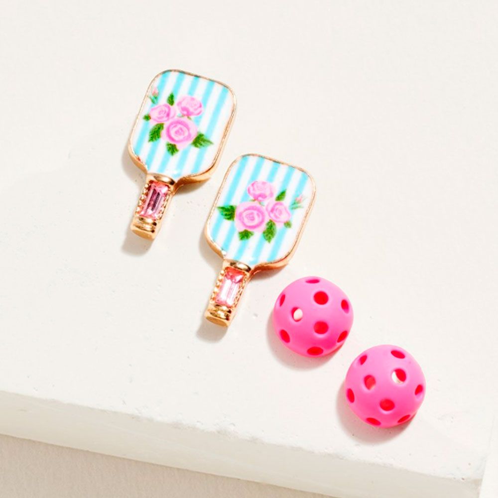 • This pickleball stud earring set features playful paddle and ball designs that add a sporty, cheerful touch to everyday looks. Easy to wear and style, these studs are perfect for casual outfits, gifting, or showing off pickleball pride with a fun, lightweight accessory that fits seamlessly into any jewelry collection.