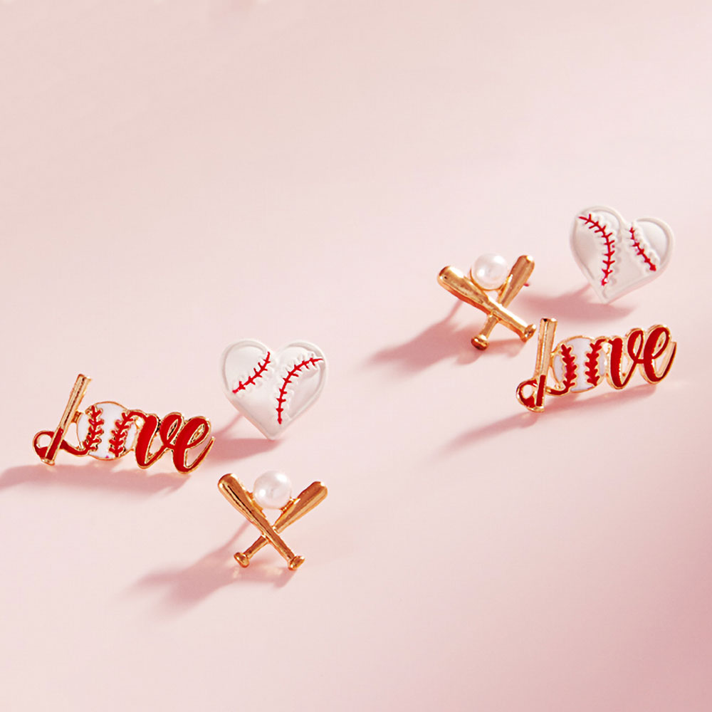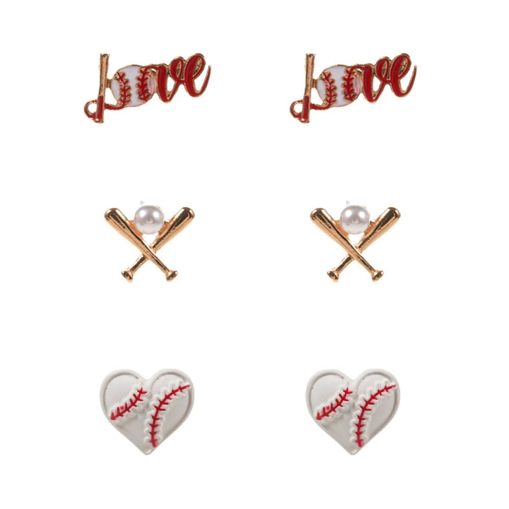 3Pairs - Baseball-Themed Stud Earring Set 3Pairs - Baseball-Themed Stud Earring Set 3Pairs - Baseball-Themed Stud Earring Set 3Pairs - Baseball-Themed Stud Earring Set