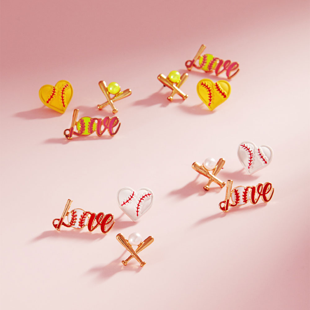 3Pairs - Softball-Themed Stud Earring Set