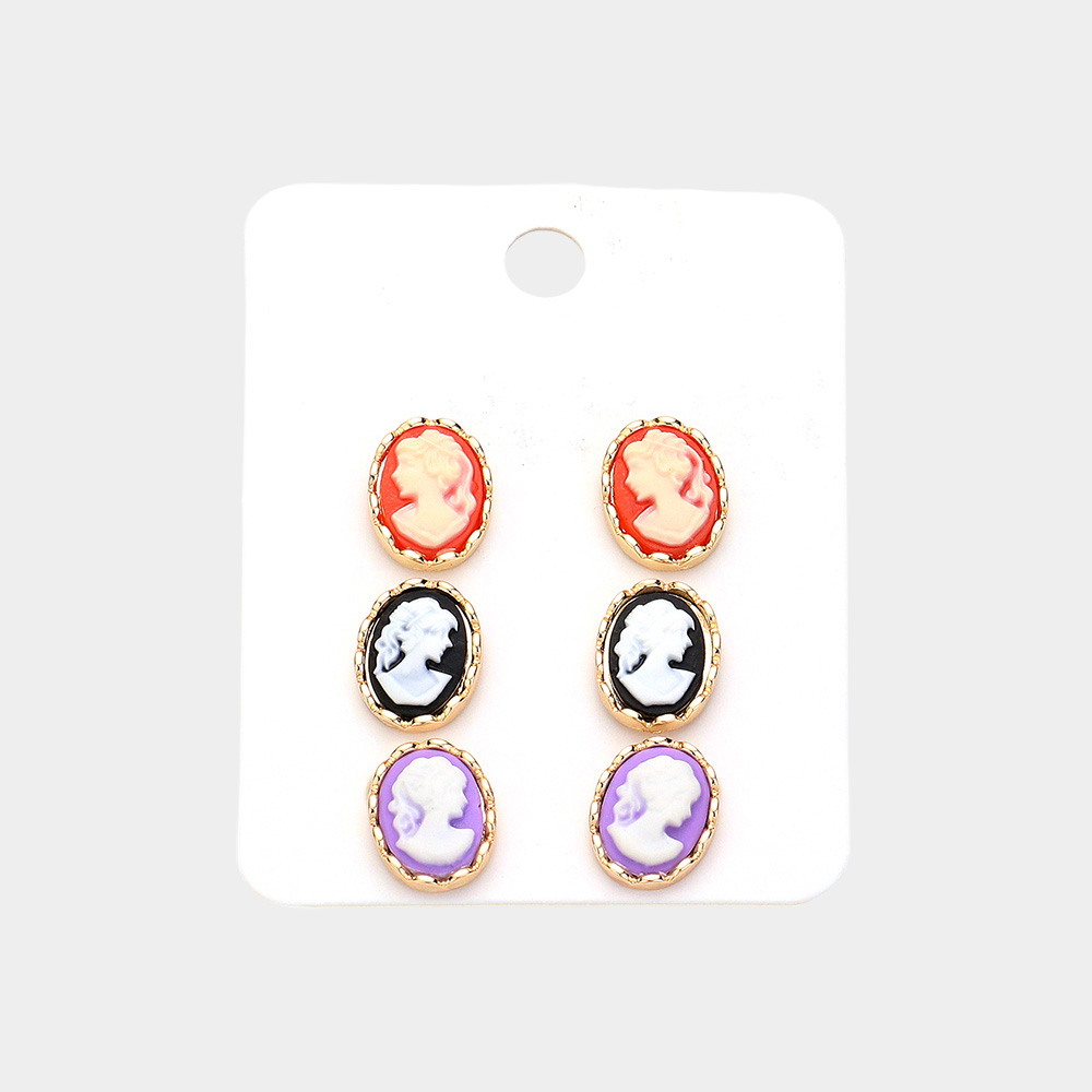 Crystal Accent Vintage Cameo Drop Dangle Earrings