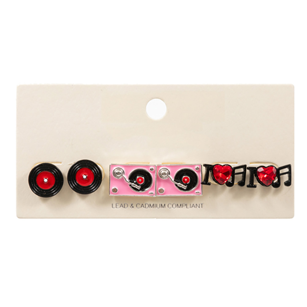 3PAIRS - Enamel Turn Table Music Stud Earring Set