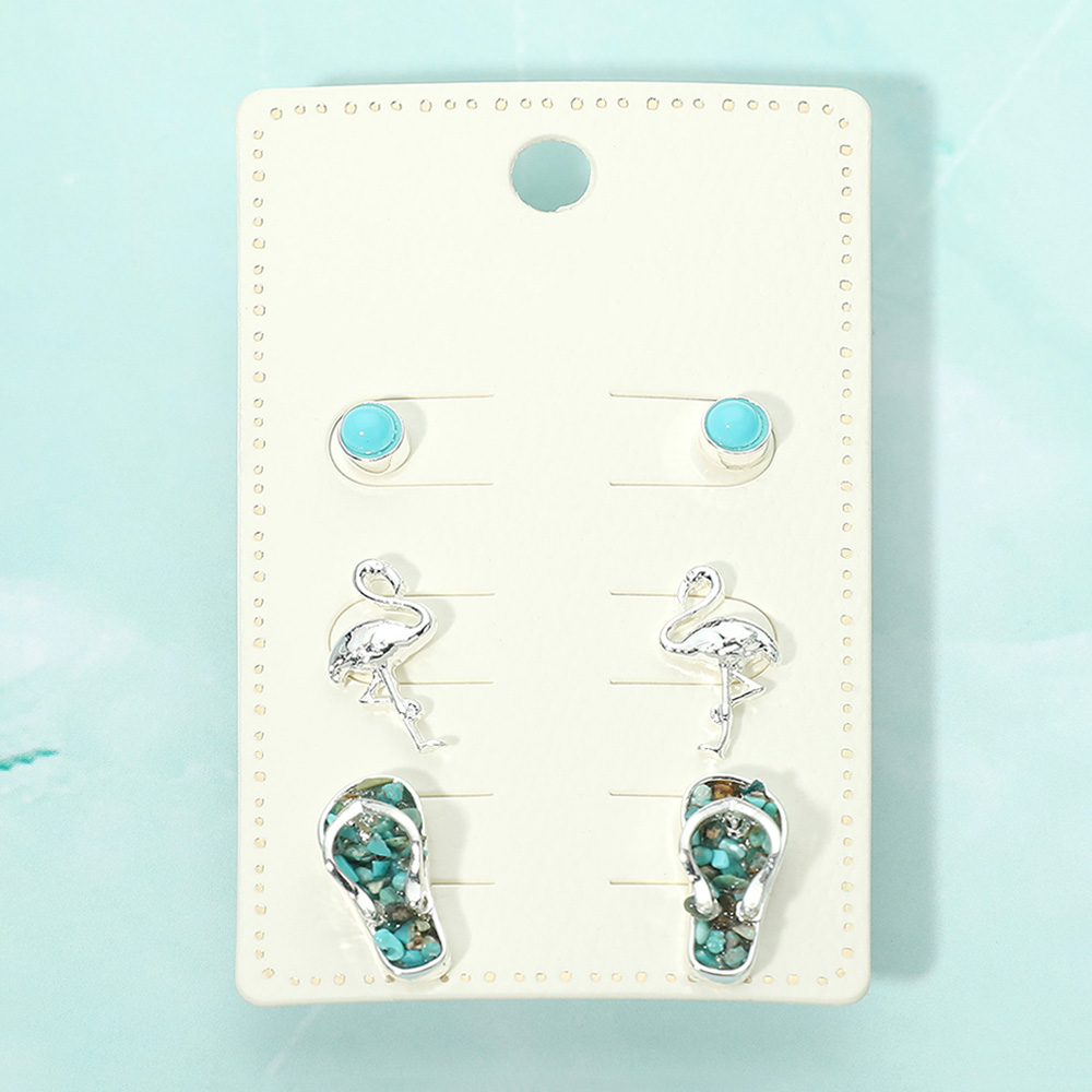3Pairs - Flamingo Flip Flop Stud Earring Set 3Pairs - Flamingo Flip Flop Stud Earring Set