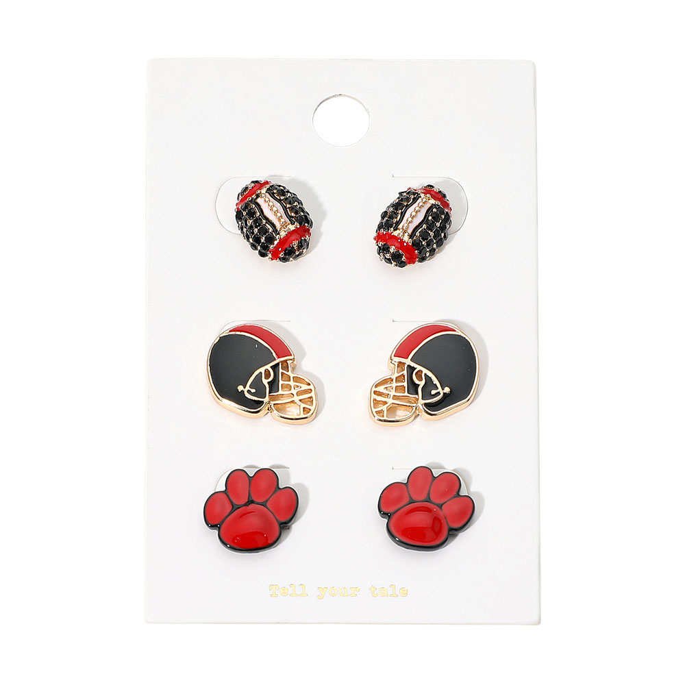 3Pairs - Game Day Spirit Ball Helmet Paw Stud Earring Set