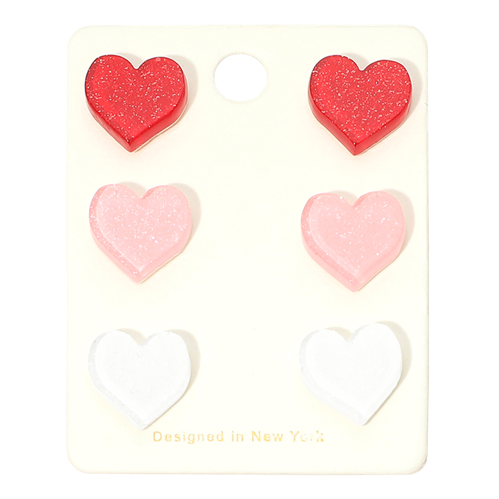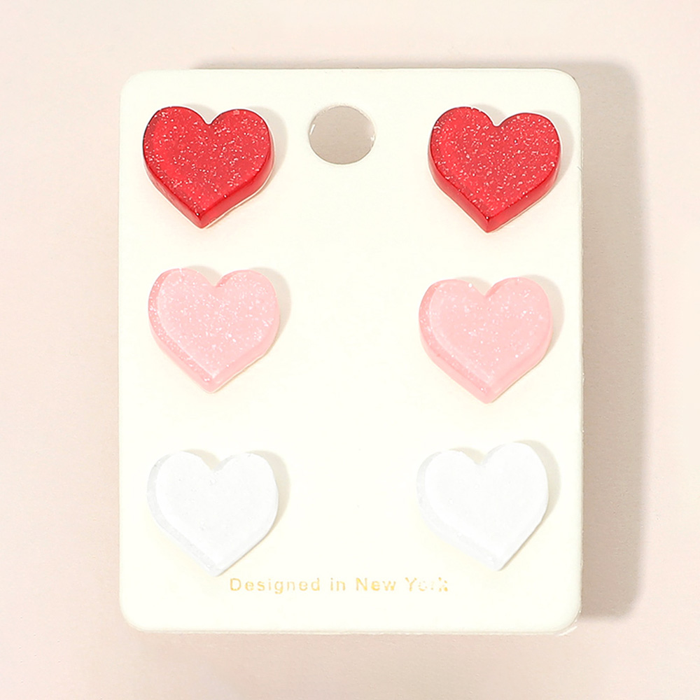 Details • Size : 0.5" X 0.5" • Post Back • Heart shape stud earring set featuring multiple pairs designed for versatile daily wear. Easy to mix and match with casual outfits, gifting themes, seasonal collections, and everyday accessory displays. A charming stud set ideal for boutiques, layered looks, and simple statement styling. • Lead and Nickel Compliant