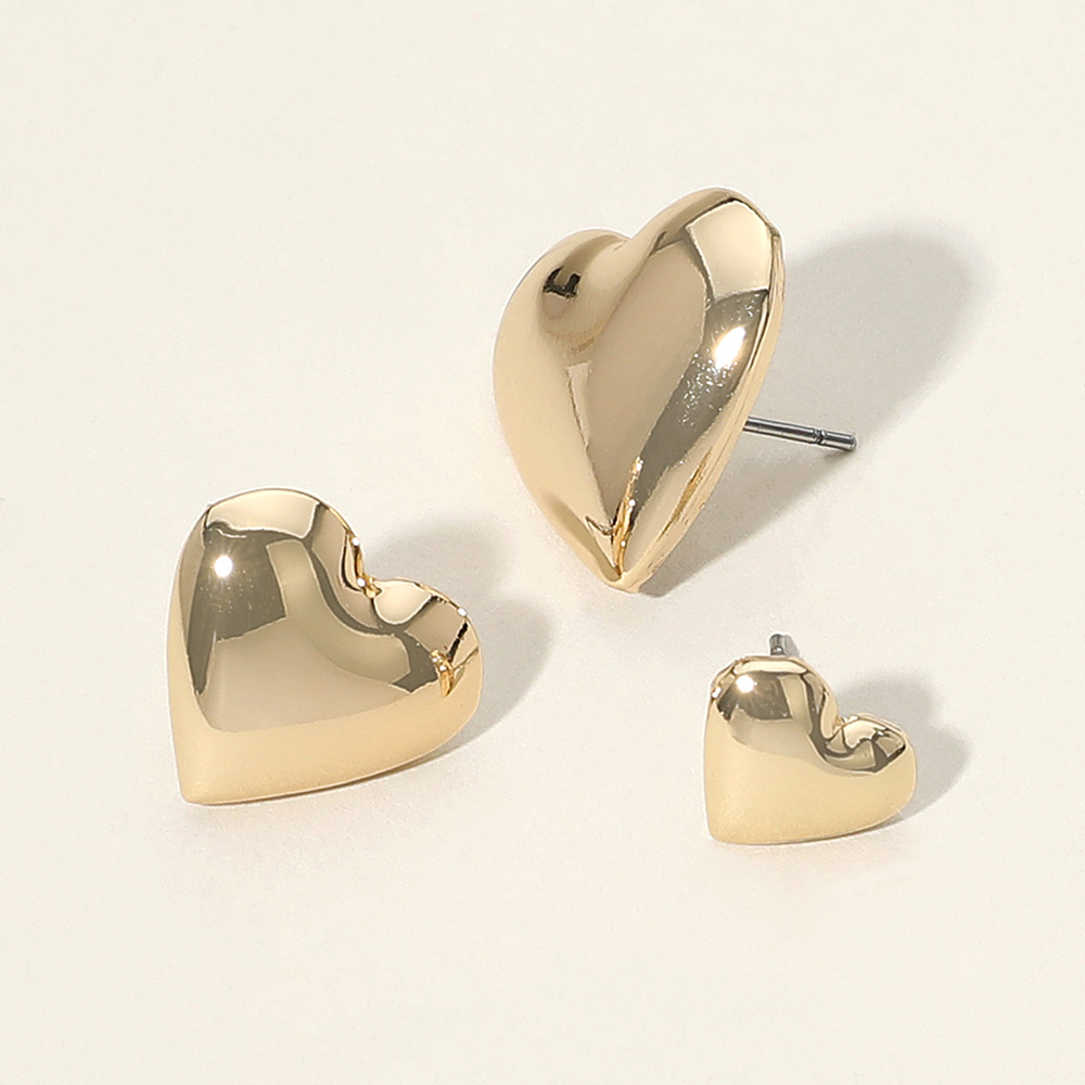 3Pairs - Metal Heart Stud Earring Set 3Pairs - Metal Heart Stud Earring Set 3Pairs - Metal Heart Stud Earring Set