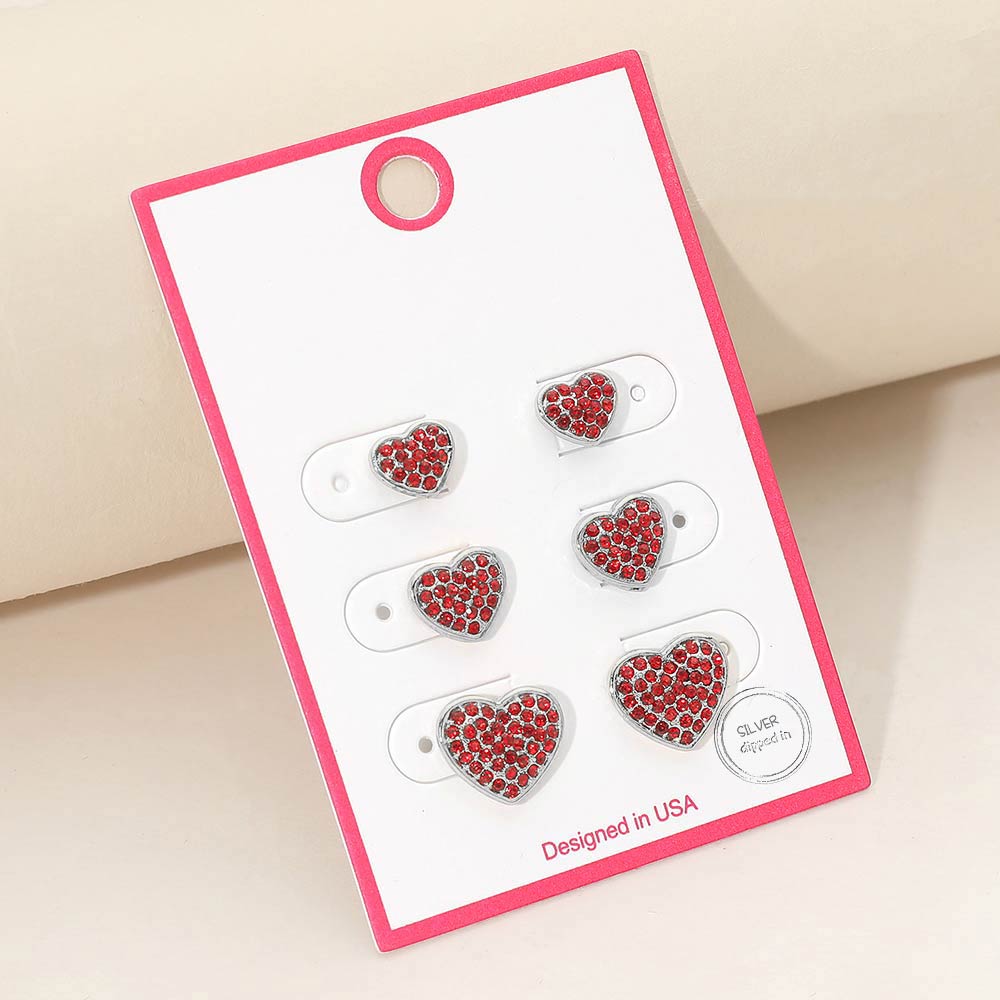 • This heart stud earring set features multiple heart-shaped designs accented with shimmering crystal details for a clean, polished look. Ideal for everyday wear, gifting, or boutique assortments, these versatile stud earrings allow easy mixing and matching to complement casual outfits, dressy styles, and special occasion looks.