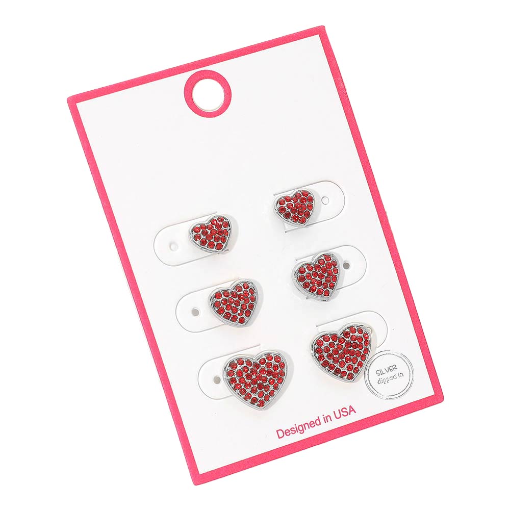 3Pairs - Silver Dipped Stone Pave Heart Stud Earring Set 3Pairs - Silver Dipped Stone Pave Heart Stud Earring Set