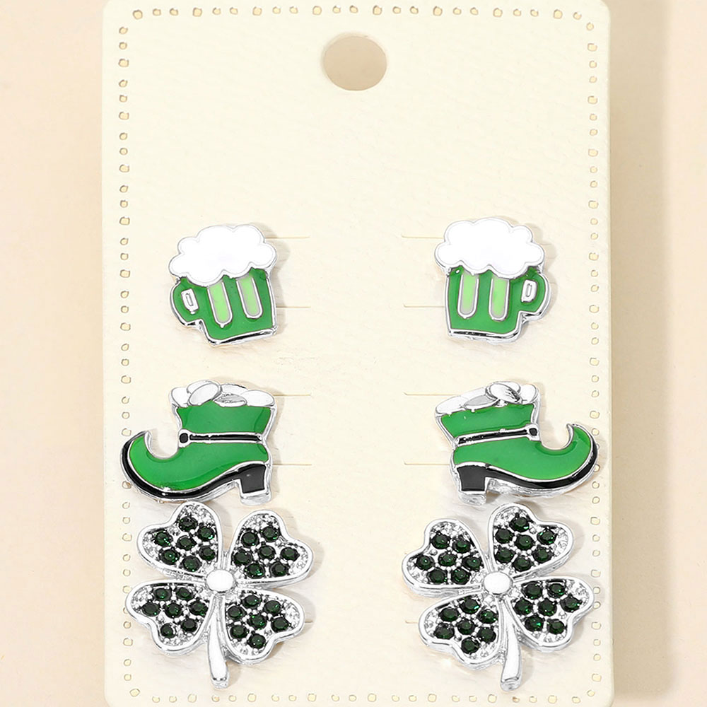 3Pairs - St Patricks Clover Boot Beer Mug Stud Earring Set 3Pairs - St Patricks Clover Boot Beer Mug Stud Earring Set