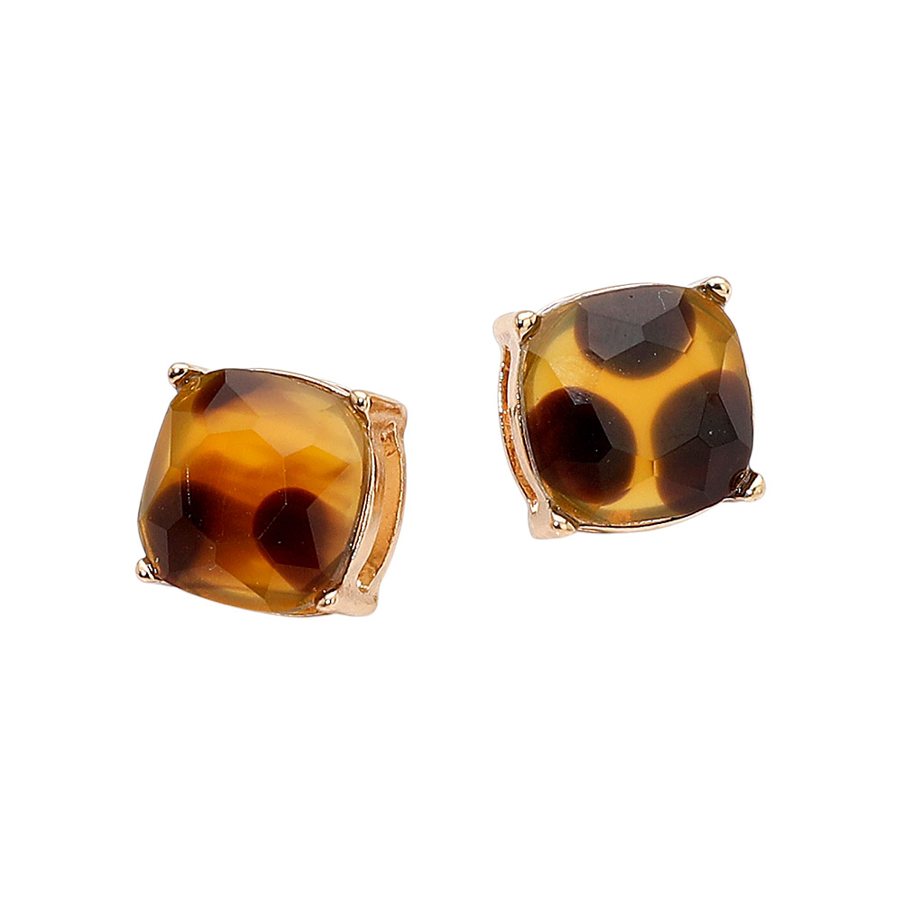 Animal Print Faceted Cushion Stud Earrings Animal Print Faceted Cushion Stud Earrings