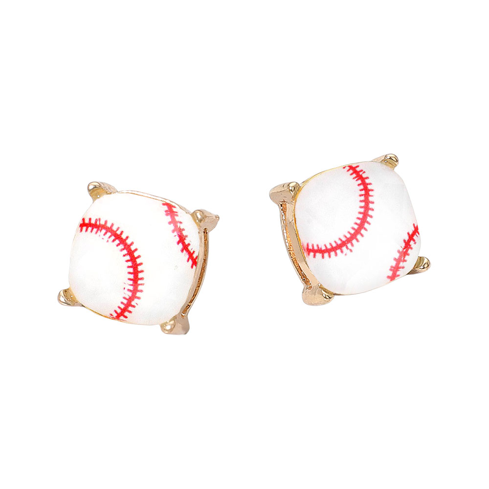 Details • Size : 0.5" X 0.5" • Post Back • These baseball stud earrings are a sporty and stylish choice for fans and players alike. With a playful design and secure fit, they add a fun and athletic touch to casual or game-day outfits, making them a favorite accessory for sports lovers. • Lead and Nickel Compliant