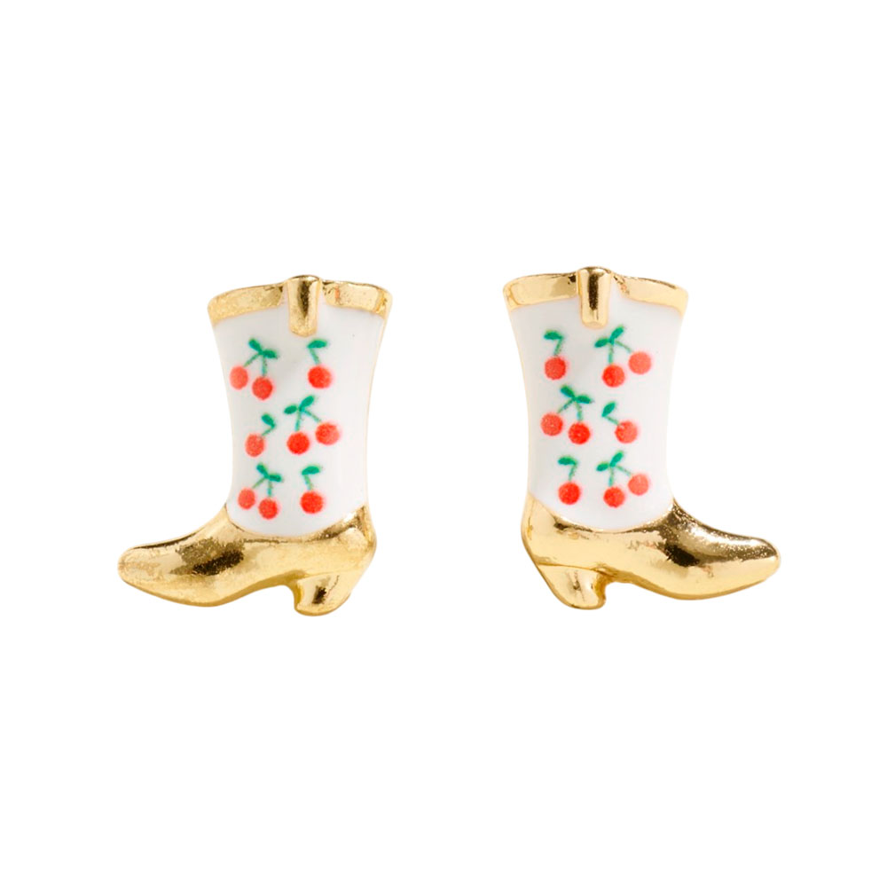 Details • Size : 0.6" X 0.7" • Titanium Post Back • Charming boot-shaped stud earrings featuring a playful fruit motif and glossy detailing for a standout yet lightweight accent. Designed for comfortable daily wear, these whimsical studs add personality to casual outfits, themed looks, or giftable accessory collections. • Hypoallergenic • Lead and Nickel Compliant
