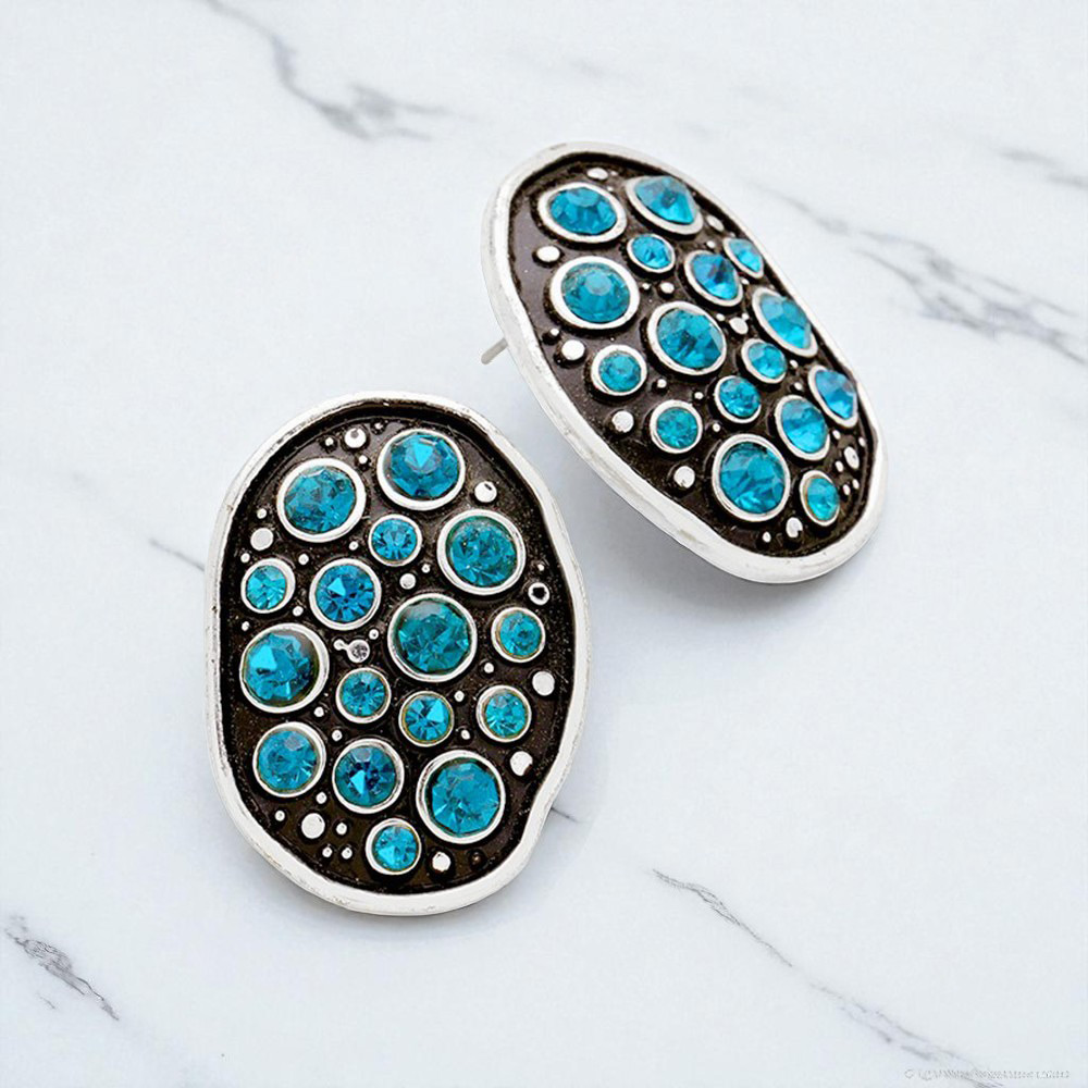 Oval Glass Stone Cluster Embellished Evening Necklace