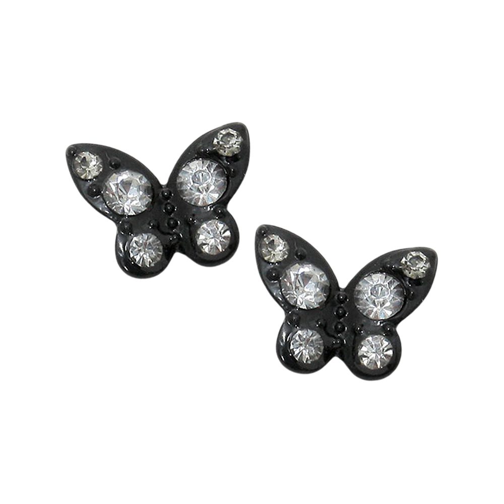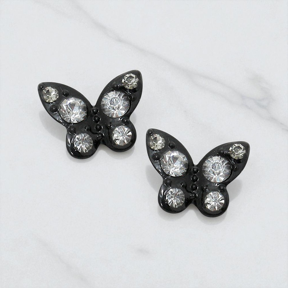 Stone Paved Butterfly Flower Pointed Disc Charm Pendant Necklace