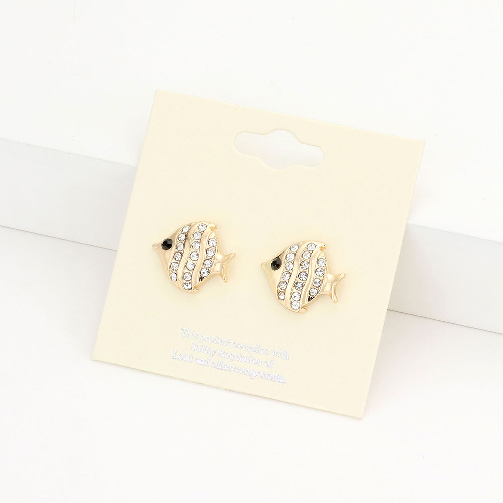 • These fish crystal stud earrings add a touch of ocean-inspired charm and sparkle to your look. Featuring a playful fish design adorned with glimmering stones, they bring a blend of elegance and whimsy, perfect for expressing your unique style with a fun, polished flair.