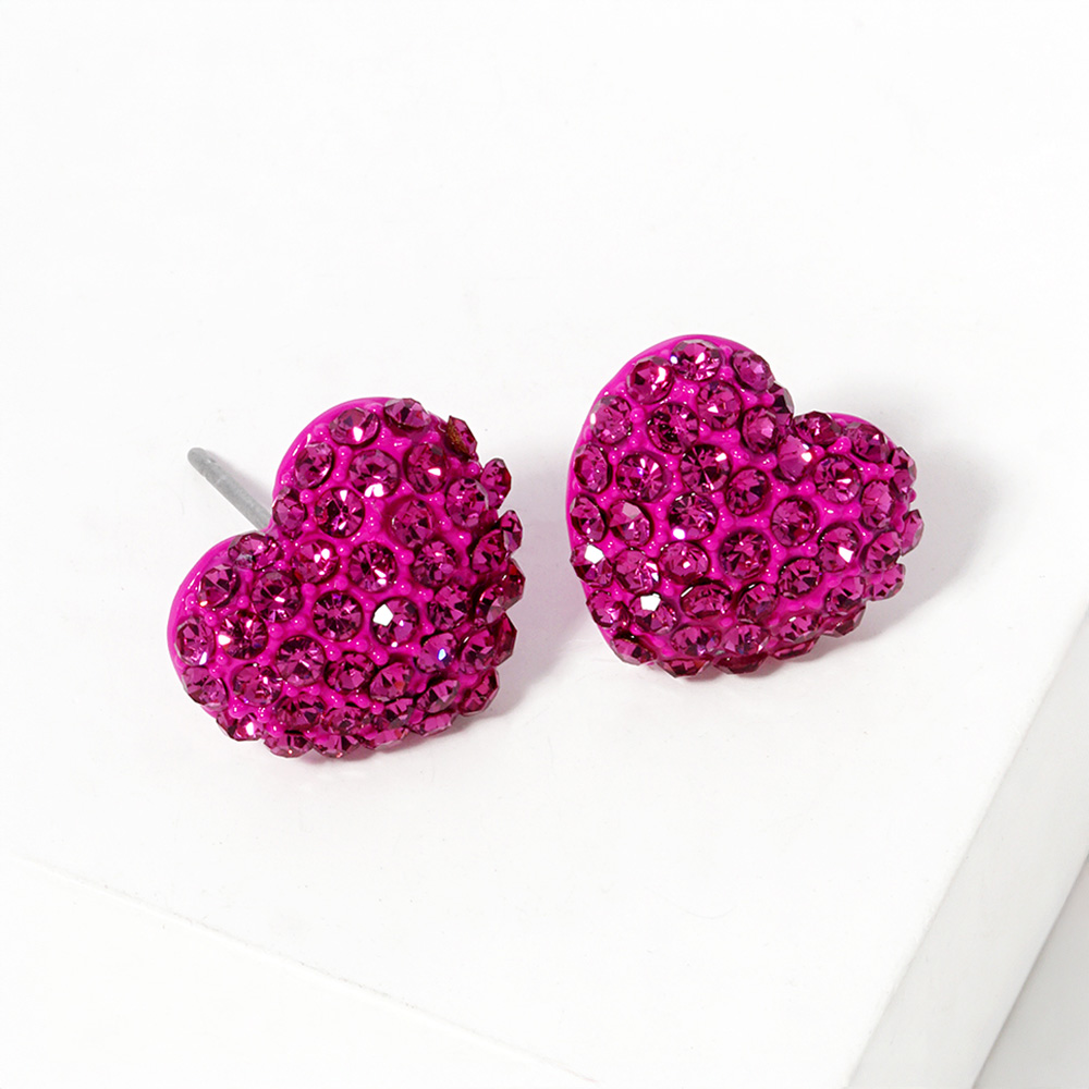 Enamel Sparkly American USA Flag Heart Stud Earrings